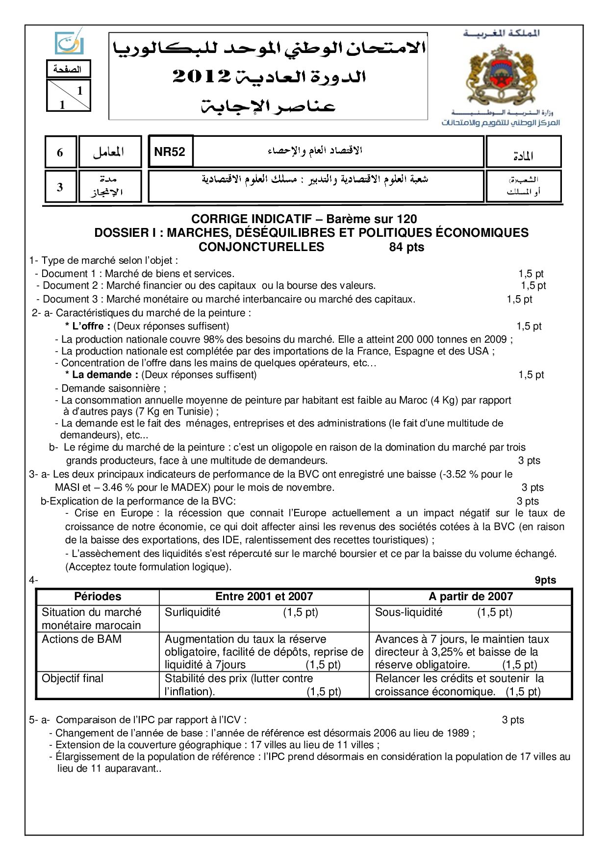 Examen Statistiques 2 Bac Eco 2012 Session Normale - Corrigé