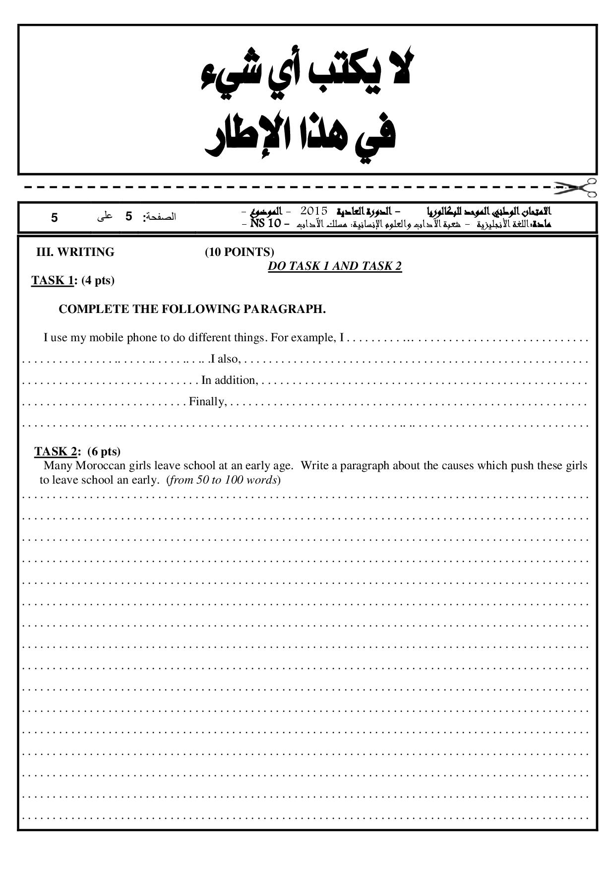 Examen Anglais Lettres 2015 Session Normale - Sujet