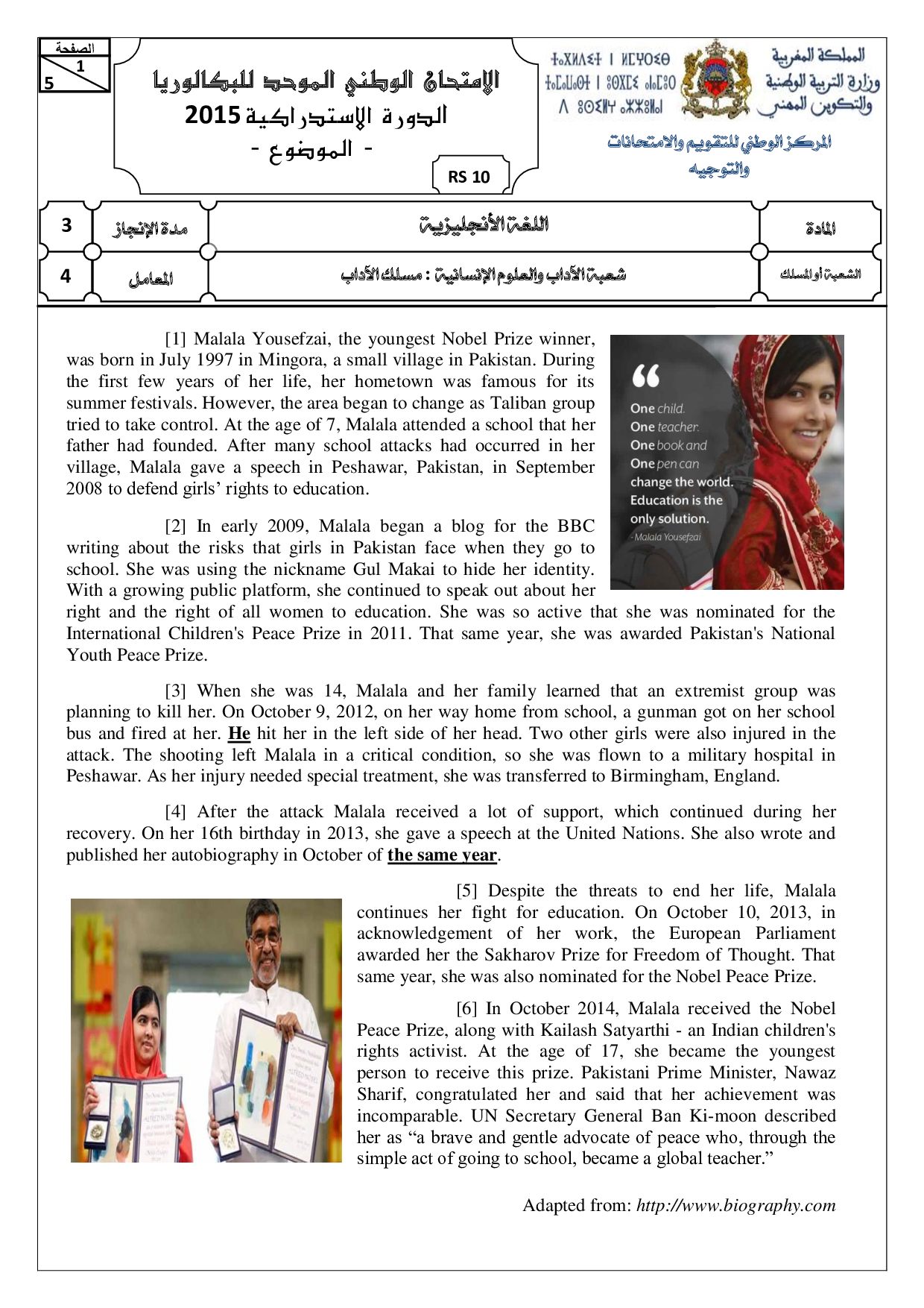 Examen Anglais Lettres 2015 Session Rattrapage - Sujet