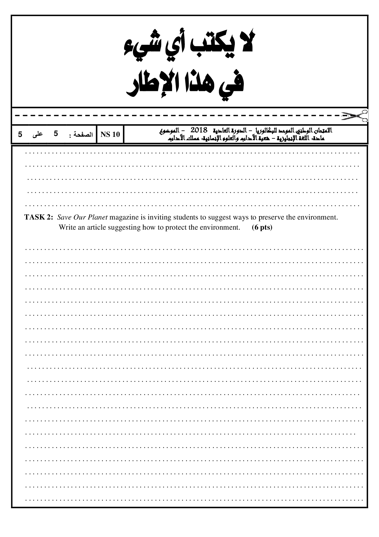 Examen Anglais Lettres 2018 Session Normale - Sujet