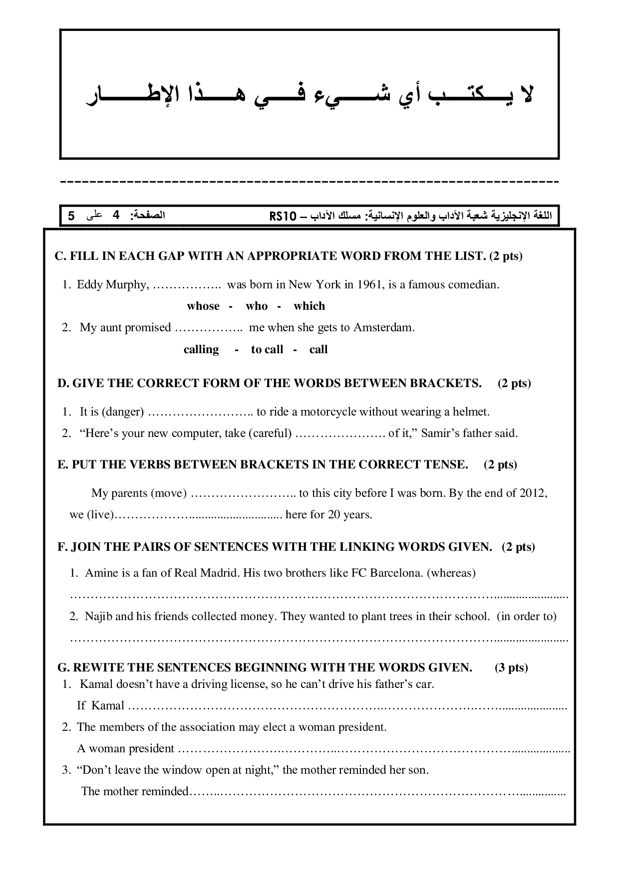 National exams with answers (Letters)