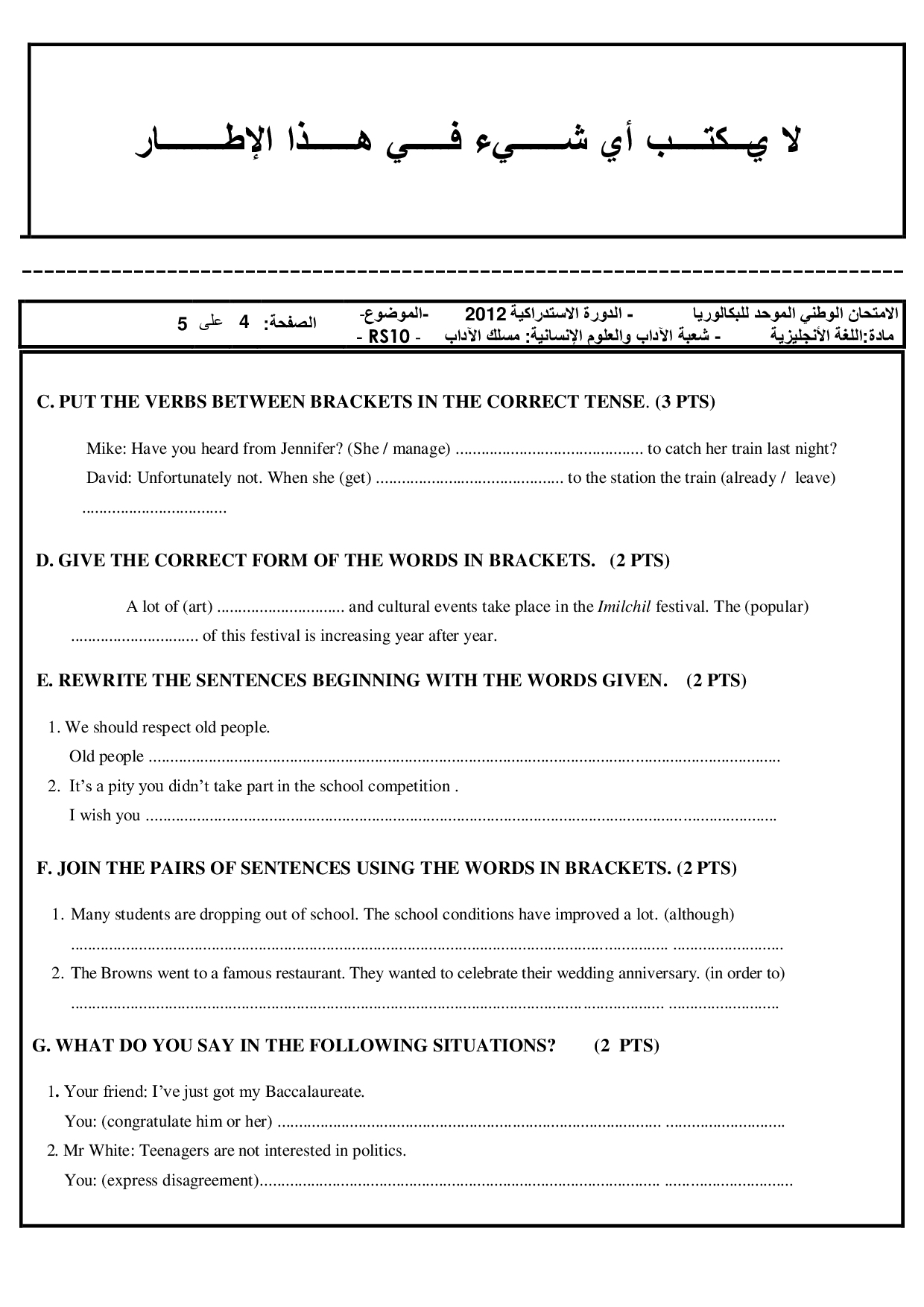 National exams with answers (Letters)