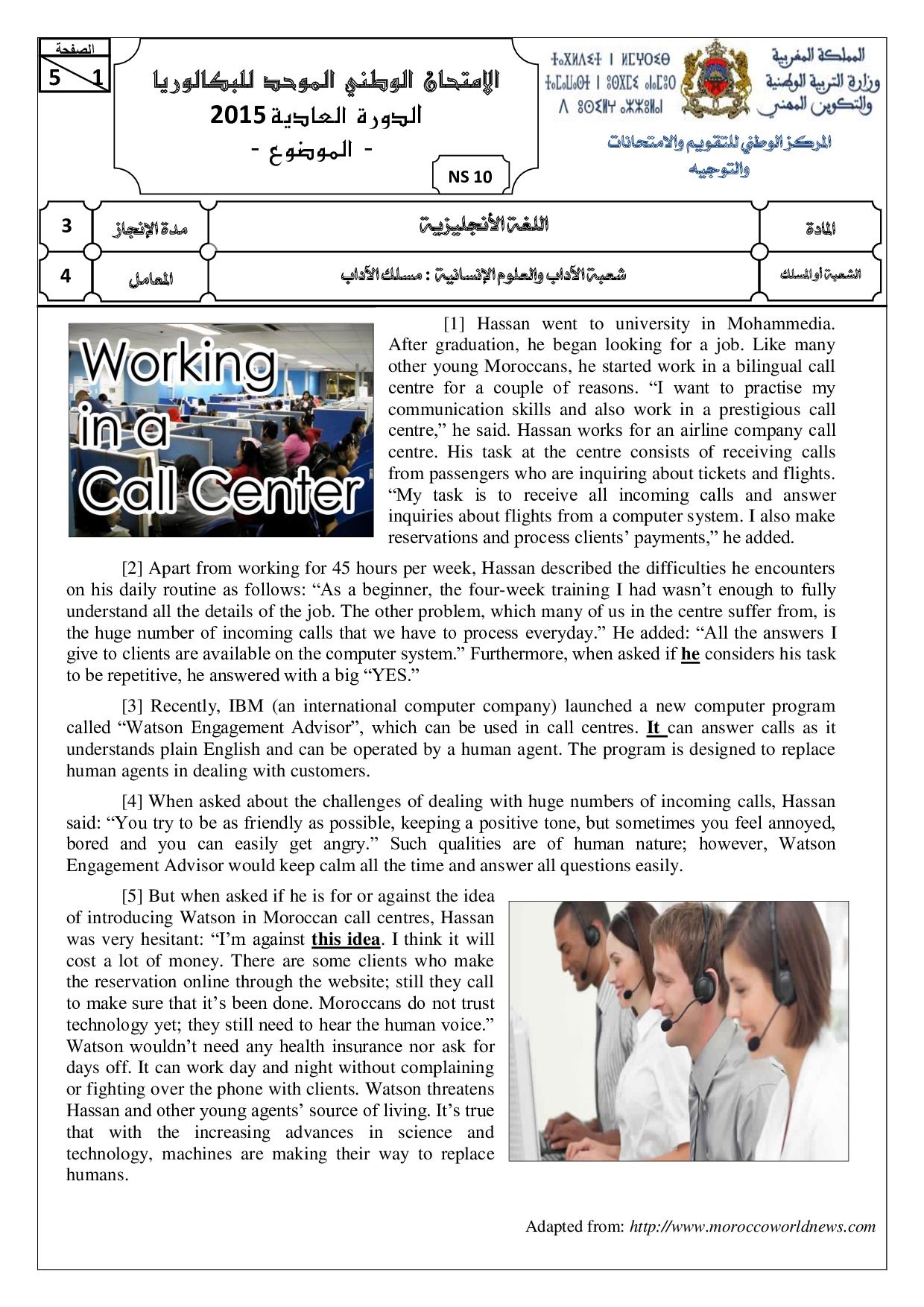 Examen Anglais Lettres 2015 Session Normale - Sujet