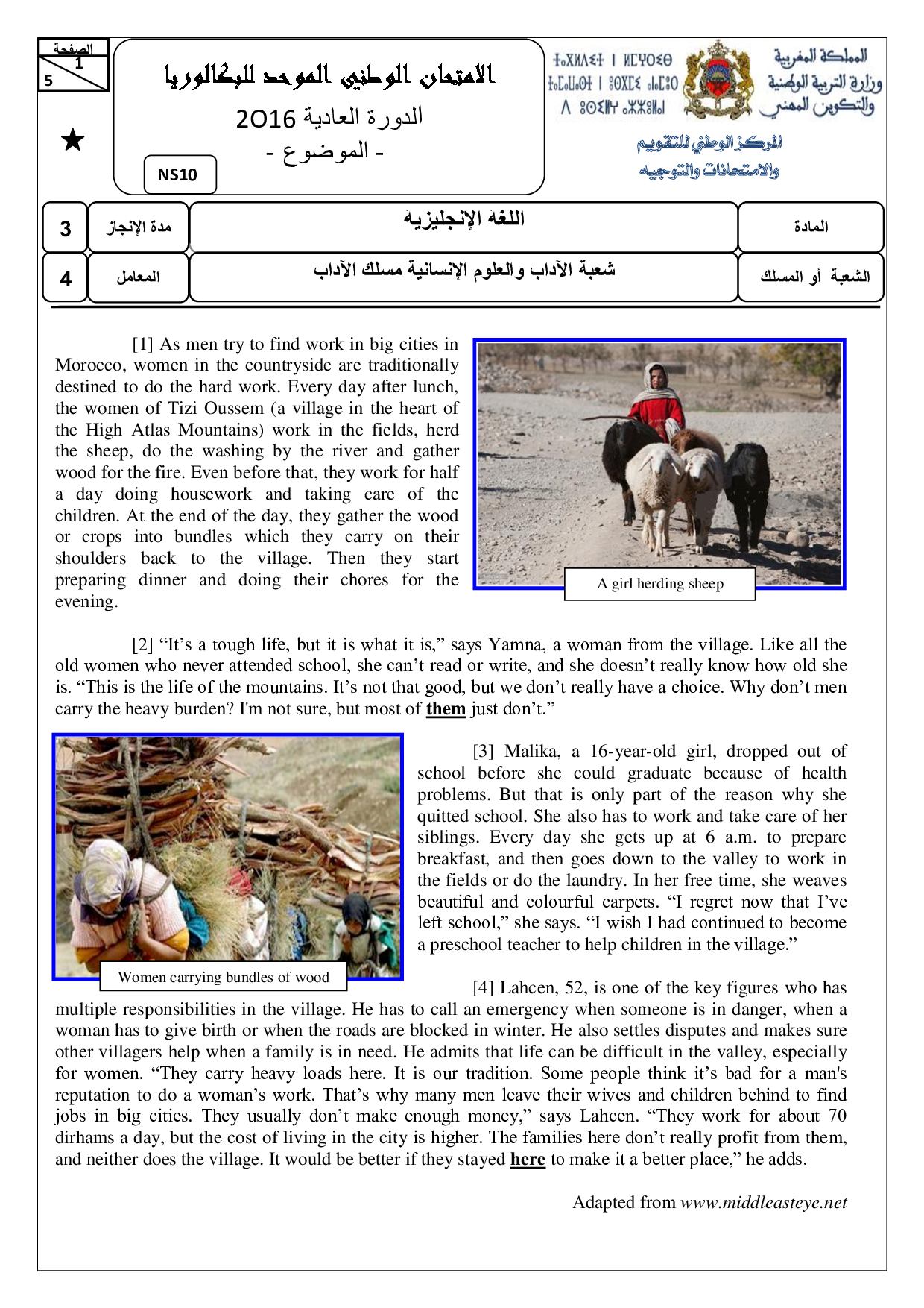 Examen Anglais Lettres 2016 Session Normale - Sujet