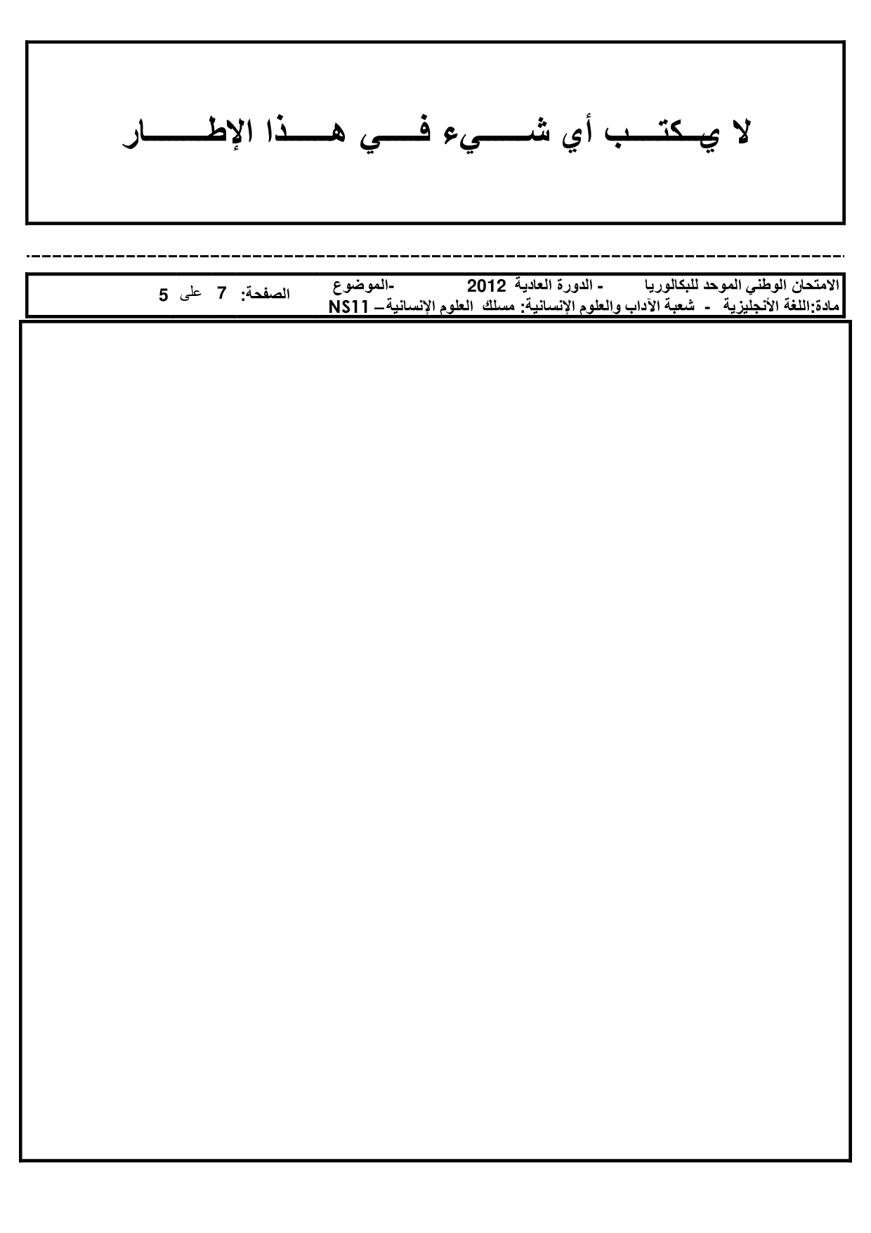 Examen Anglais Science Humaines 2012 Session Normale - Sujet