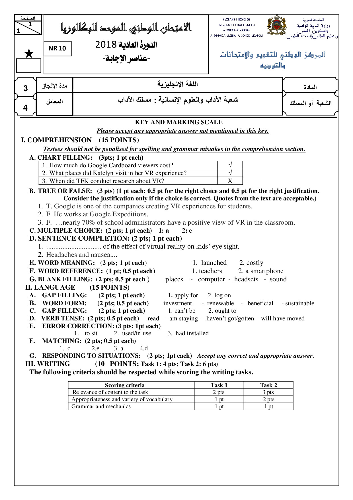 National exams with answers (Letters)