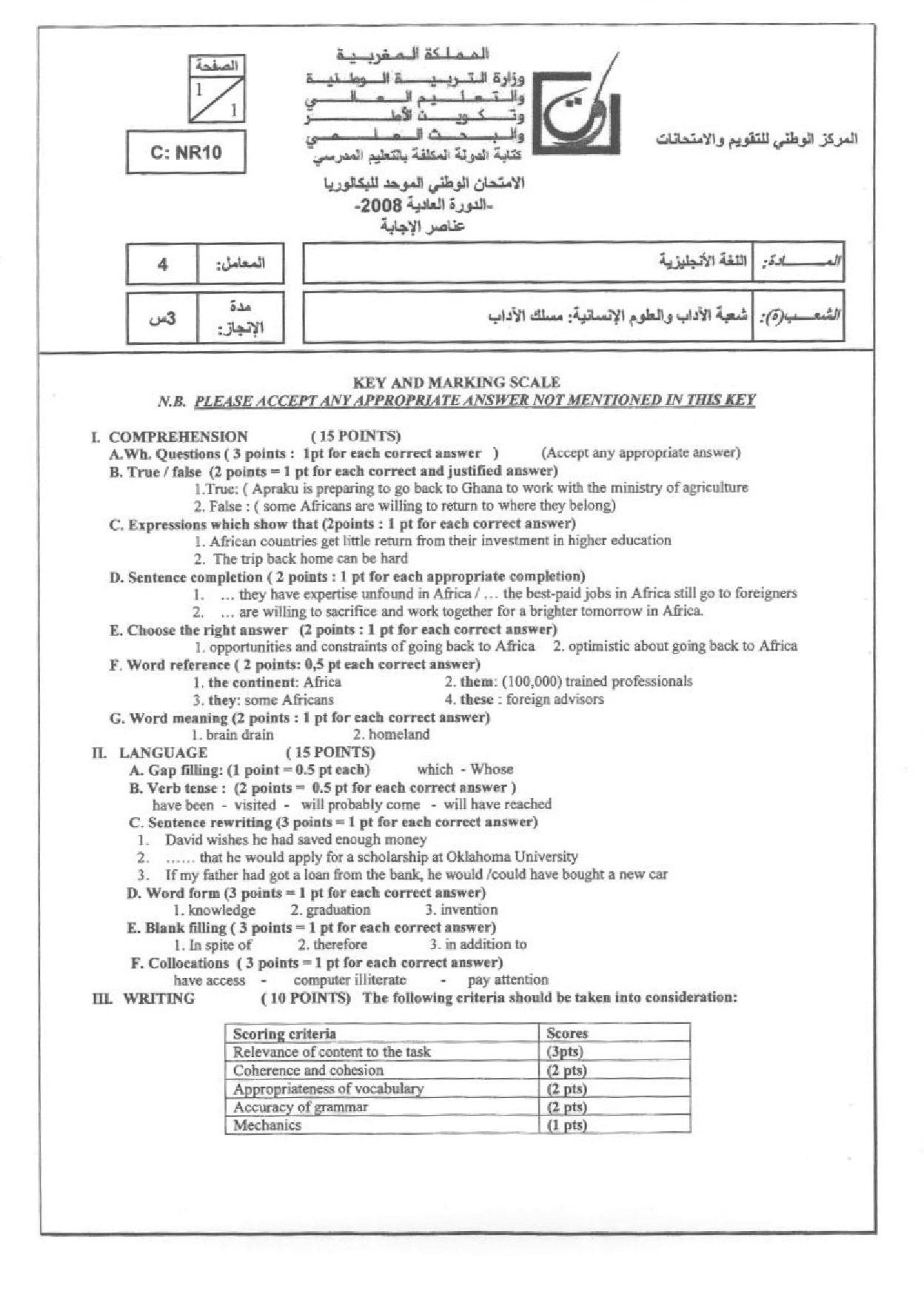 National exams with answers (Letters)