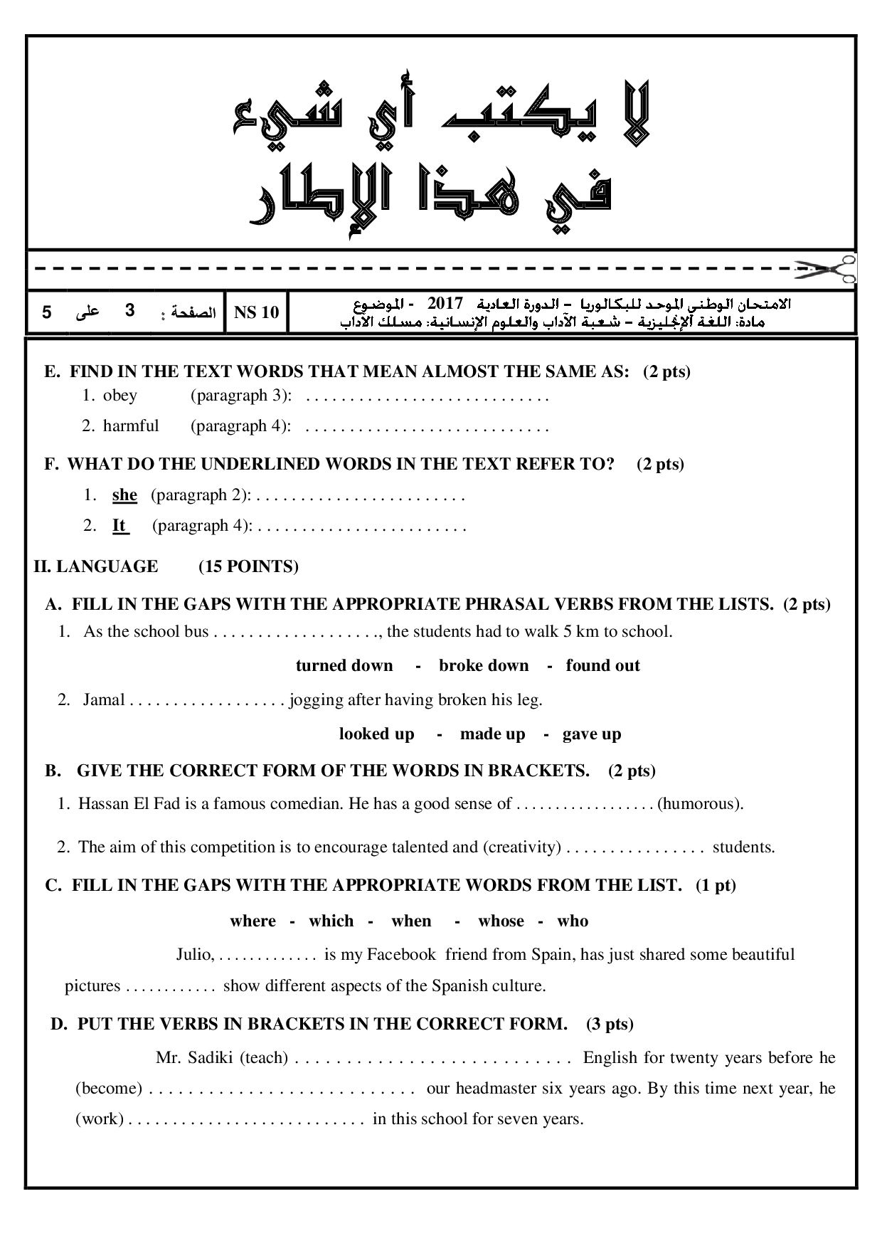 National exams with answers (Letters)