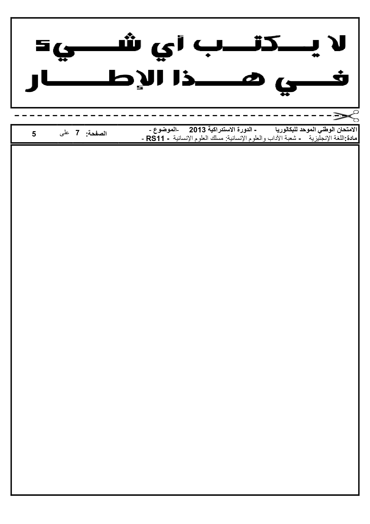 Examen Anglais Science Humaines 2013 Session Rattrapage - Sujet