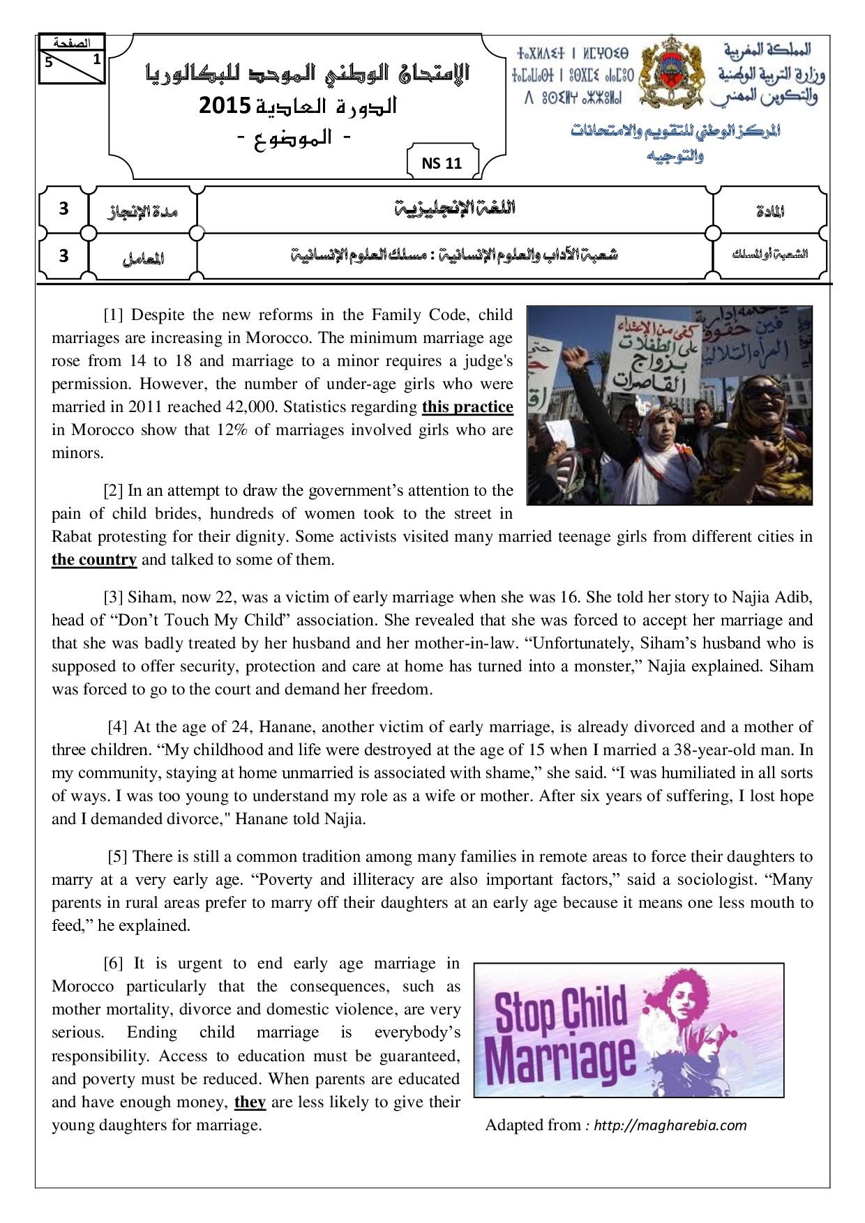 Examen Anglais Science Humaines 2015 Session Normale - Sujet