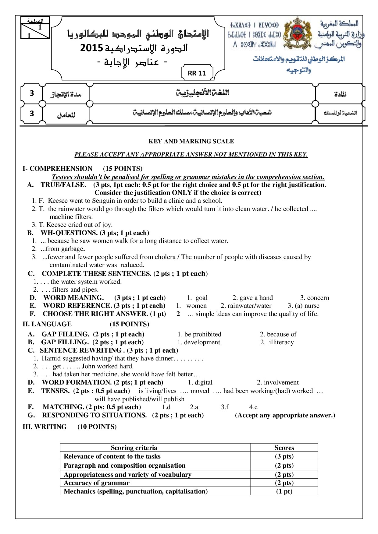 Examen Anglais Science Humaines 2015 Session Rattrapage - Corrigé