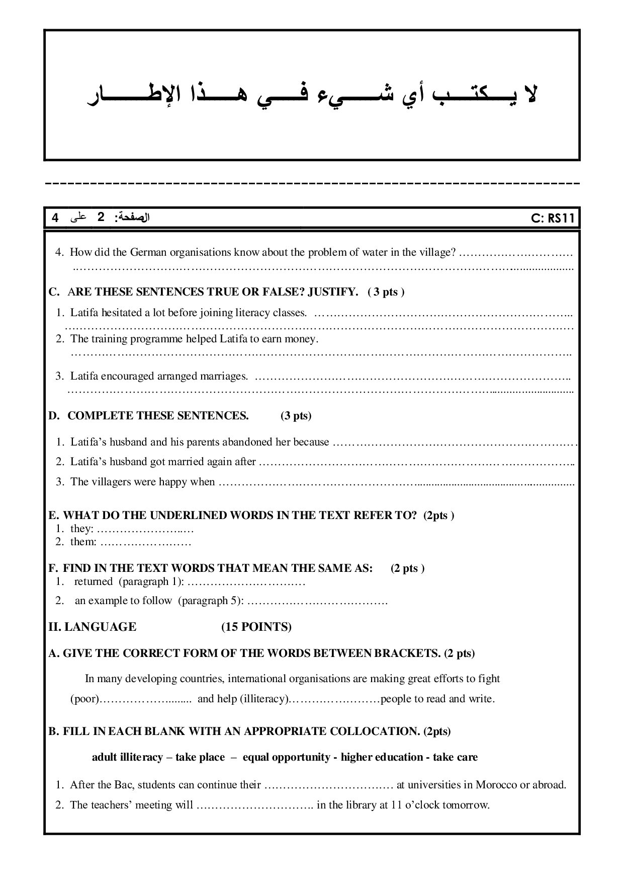 Anglais: 2ème BAC Sciences Agronomiques