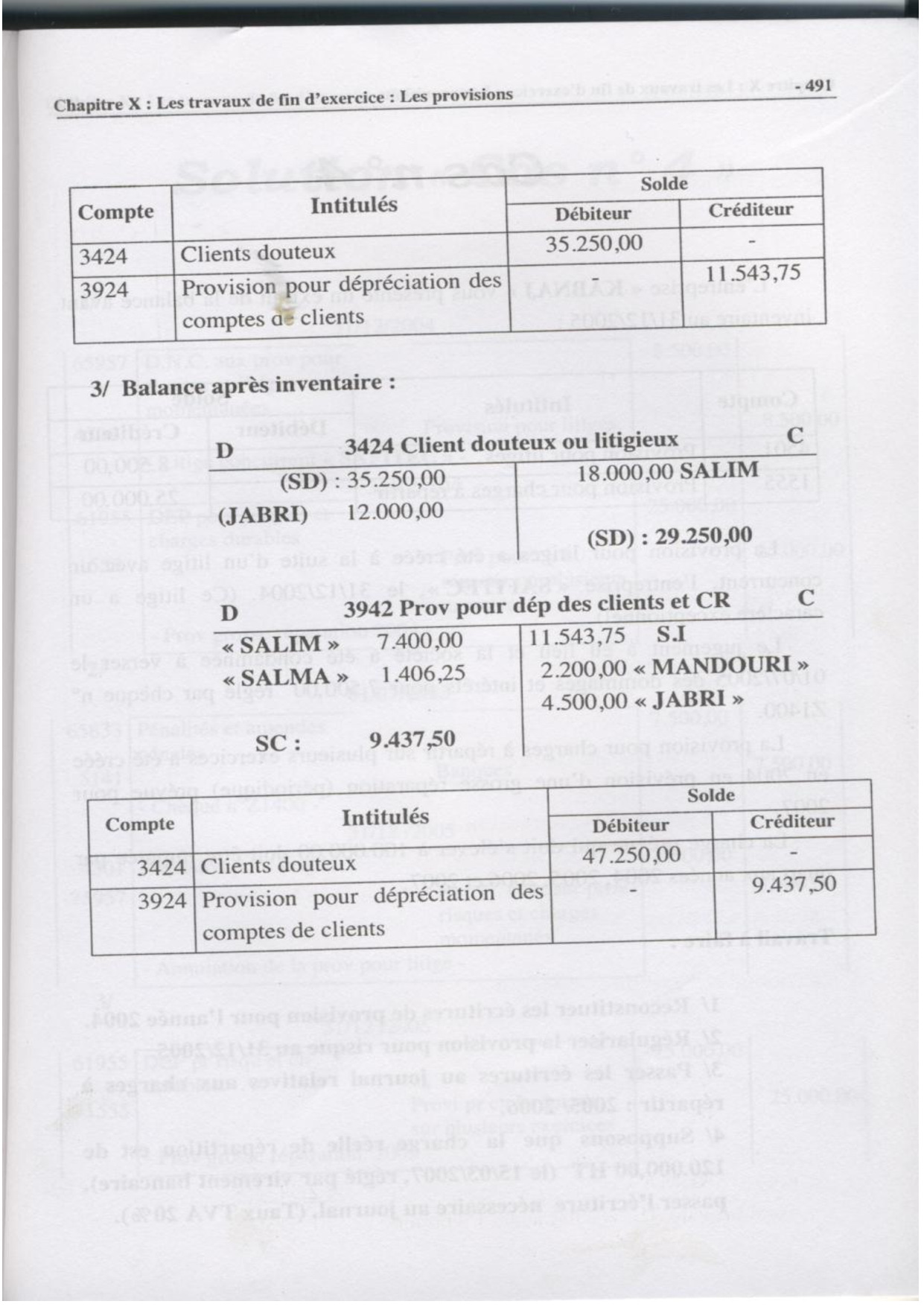 Les provisions - Exercices