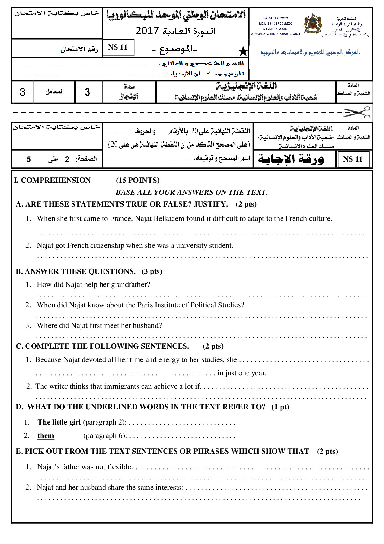 Examen Anglais Science Humaines 2017 Session Normale - Sujet