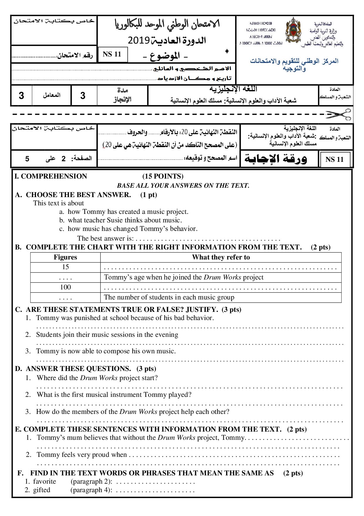 Examen Anglais Science Humaines 2019 Session Normale - Sujet