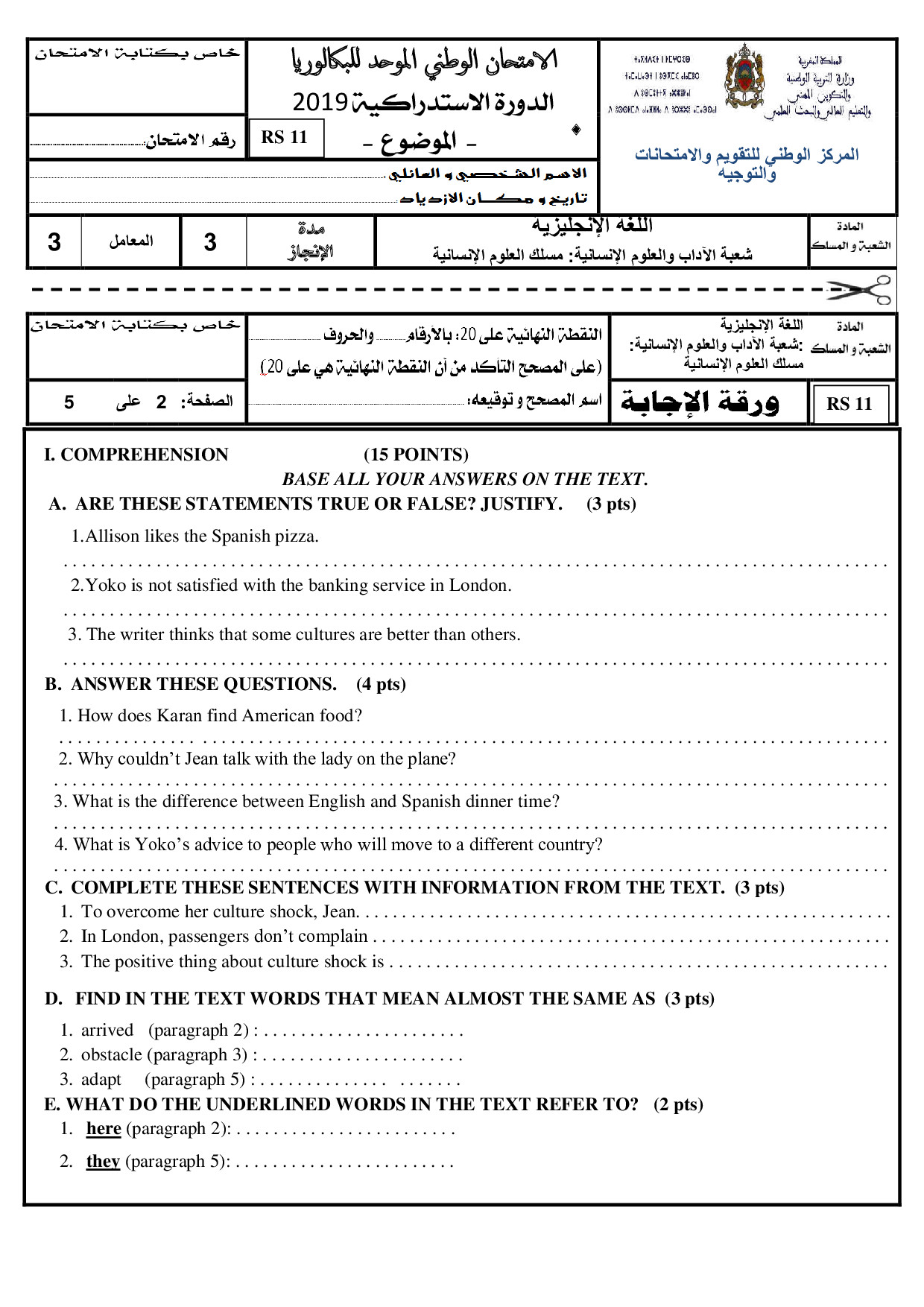 Examen Anglais Science Humaines 2019 Session Rattrapage - Sujet