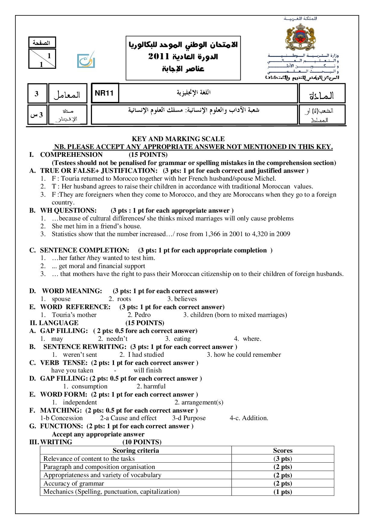 National exams with answers (Humanities)
