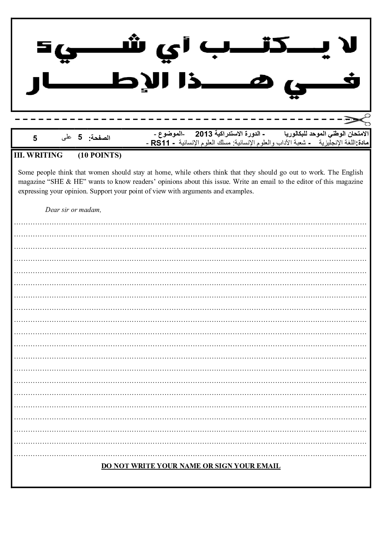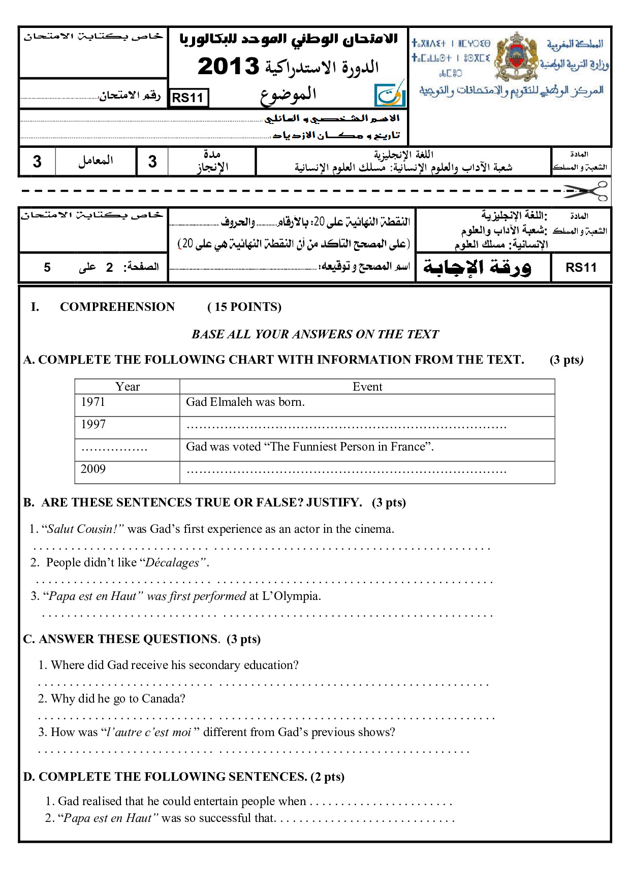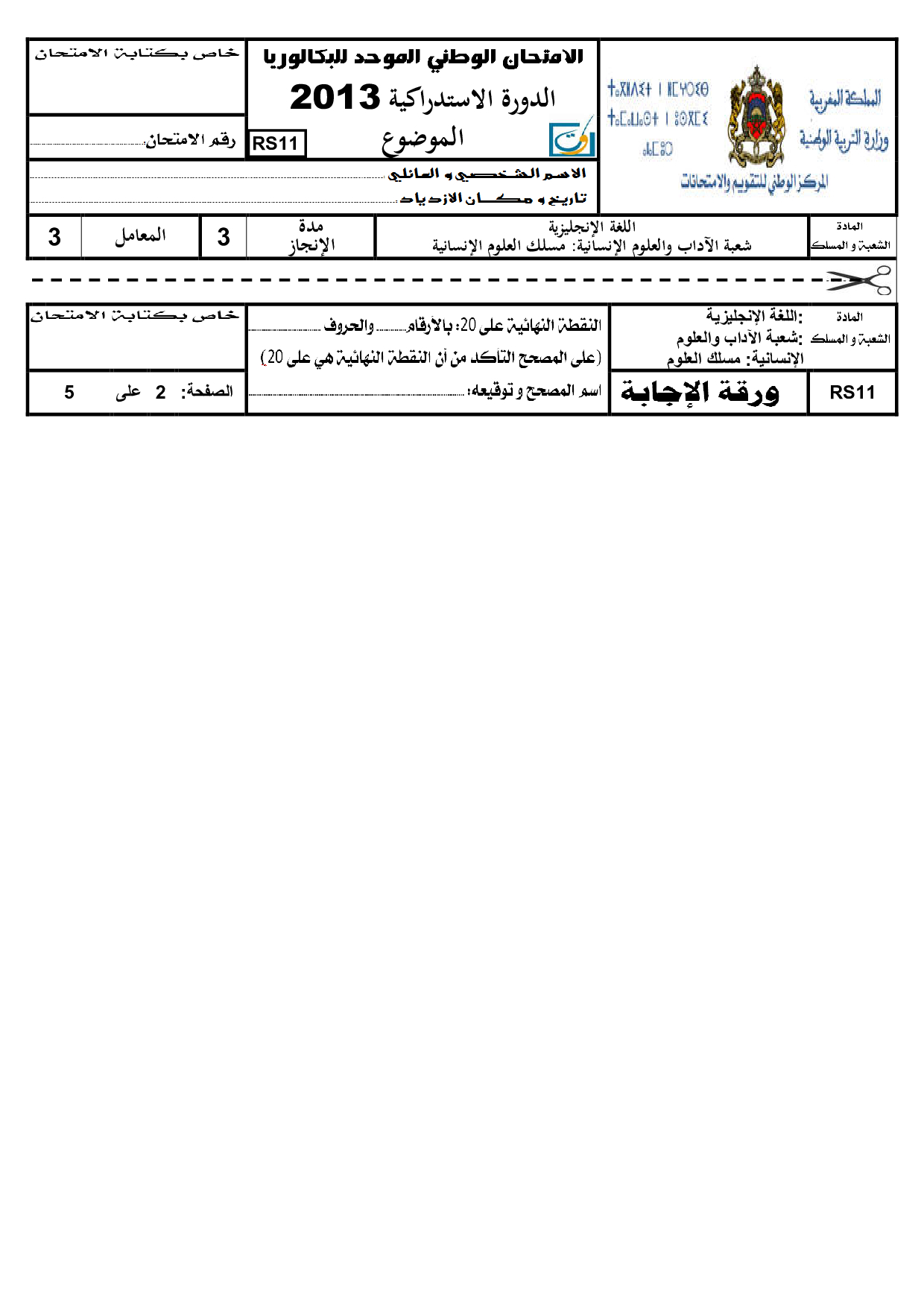 Examen Anglais Science Humaines 2013 Session Rattrapage - Sujet