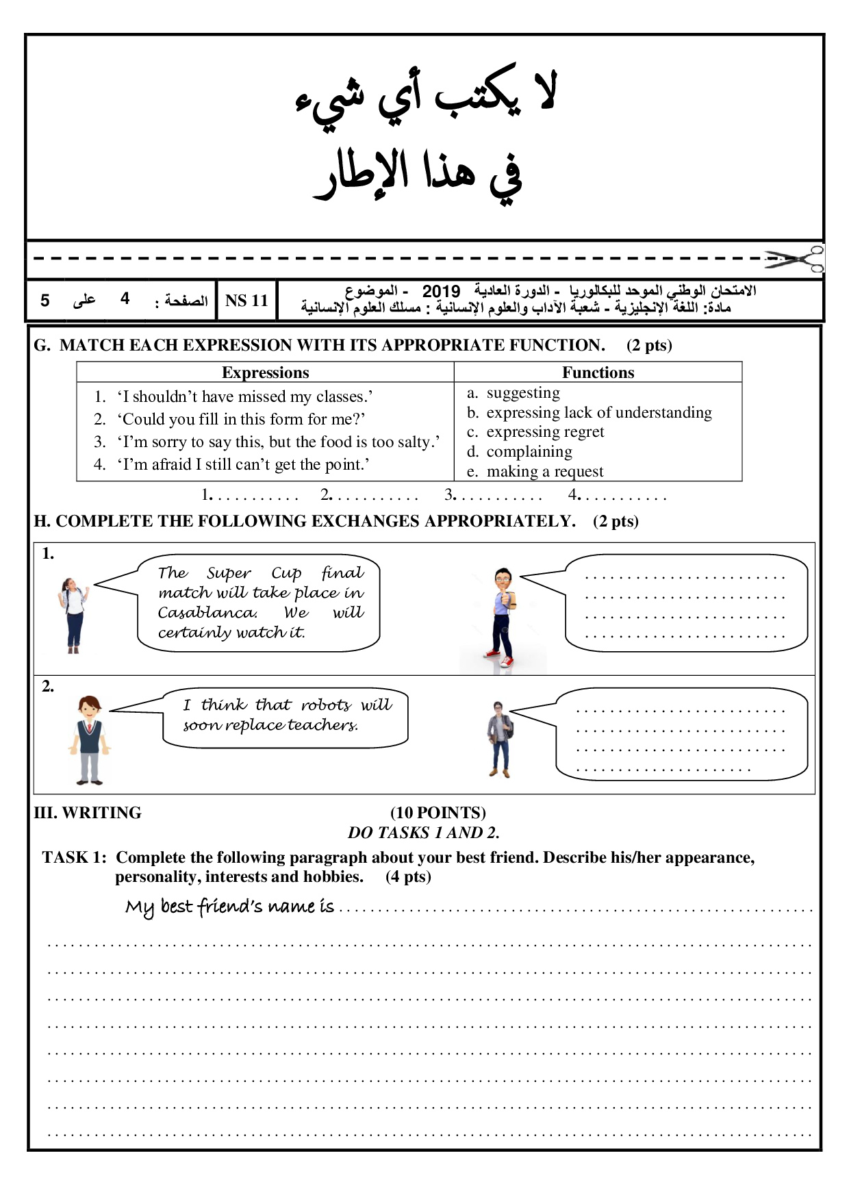 Examen Anglais Science Humaines 2019 Session Normale - Sujet