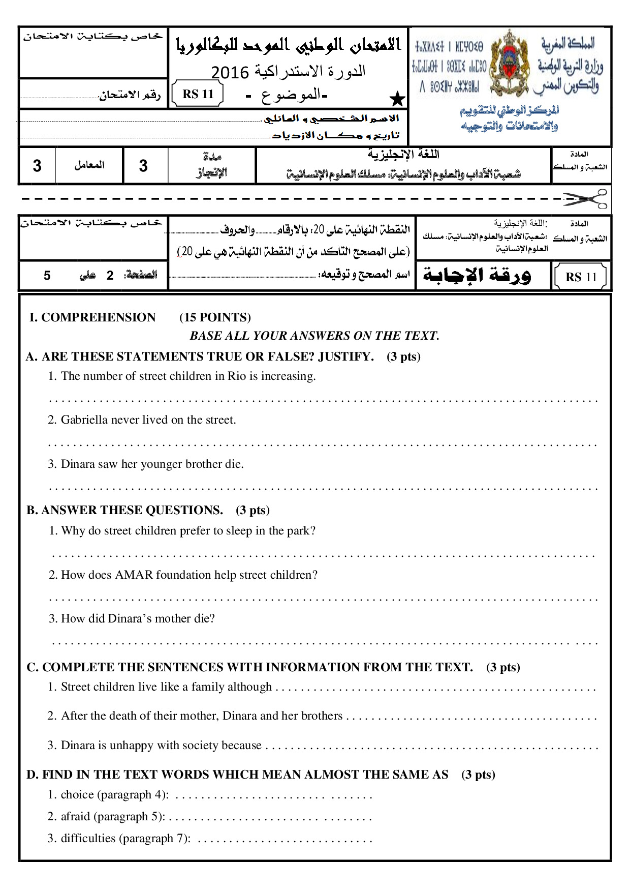 Examen Anglais Science Humaines 2016 Session Rattrapage - Sujet
