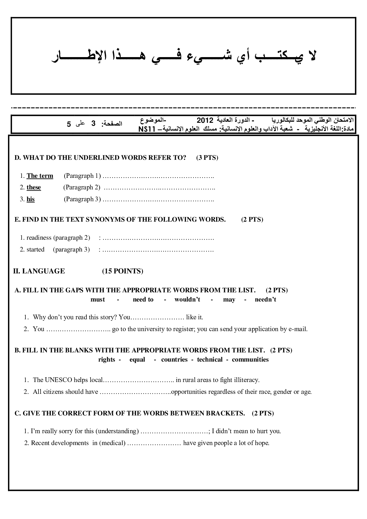 Examen Anglais Science Humaines 2012 Session Normale - Sujet