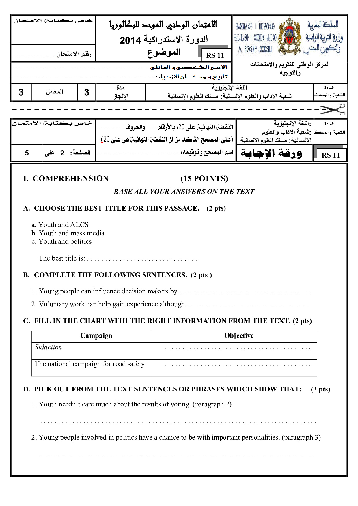 Examen Anglais Science Humaines 2014 Session Rattrapage - Sujet