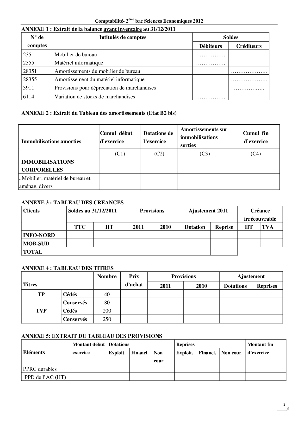Sujet d’entraînement 5 - Comptabilité 2 Bac Eco