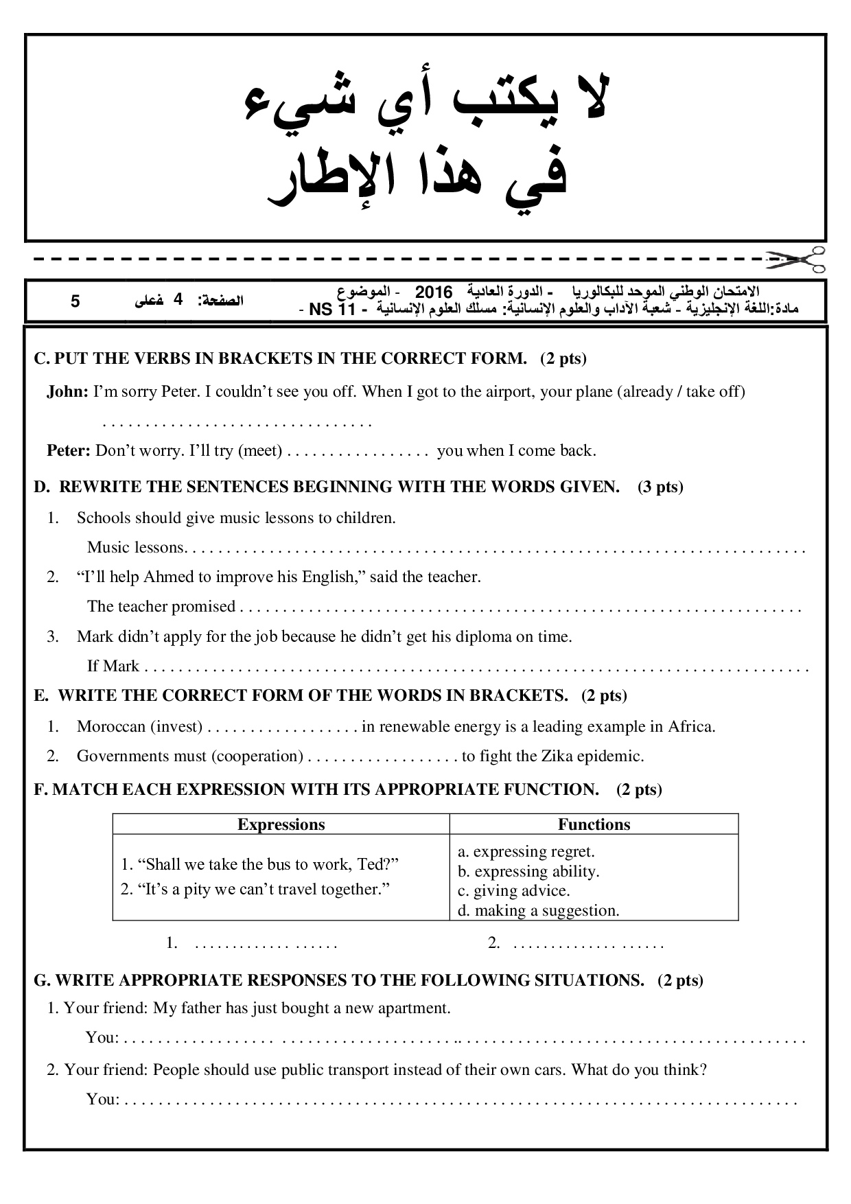 Examen Anglais Science Humaines 2016 Session Normale - Sujet