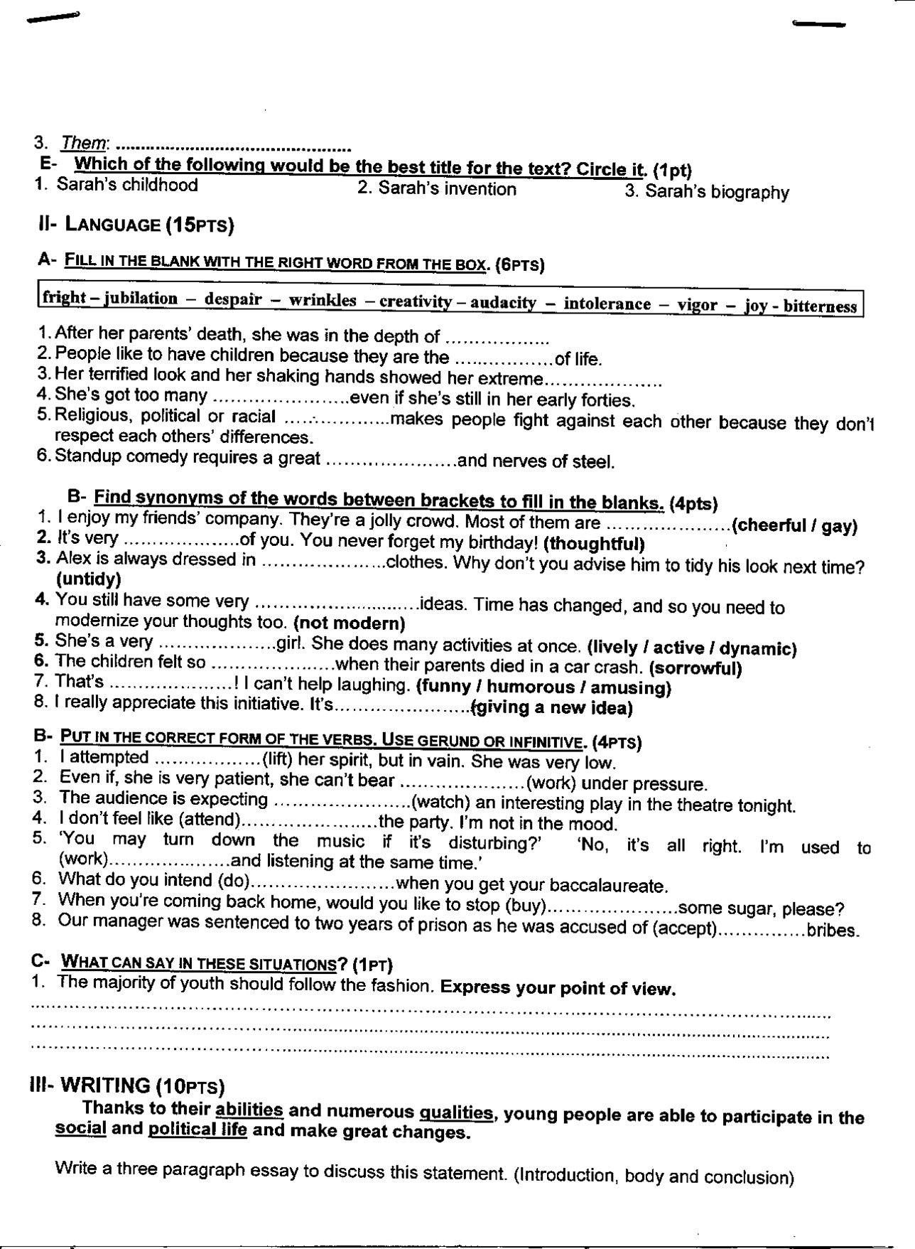 Test 1 Model 10 - English 2 Bac First term