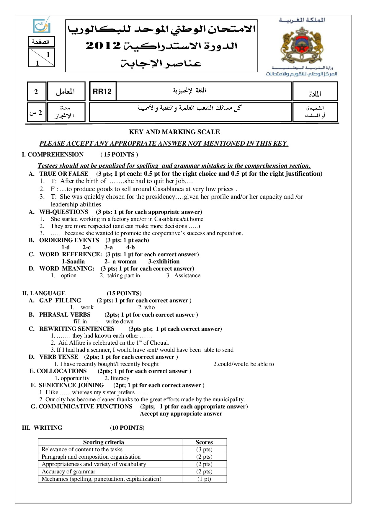 Examen Anglais 2012 Session Rattrapage - Corrigé