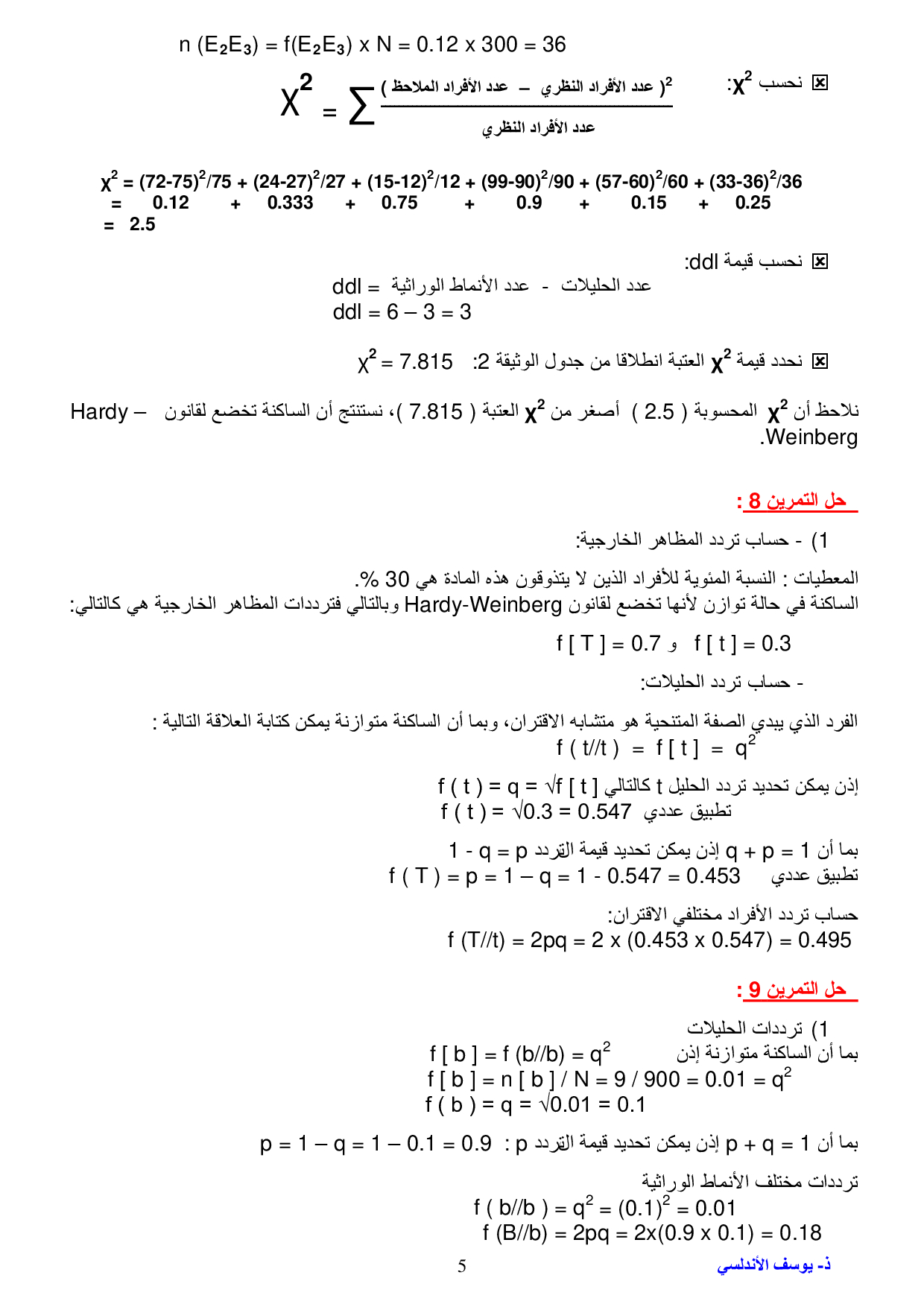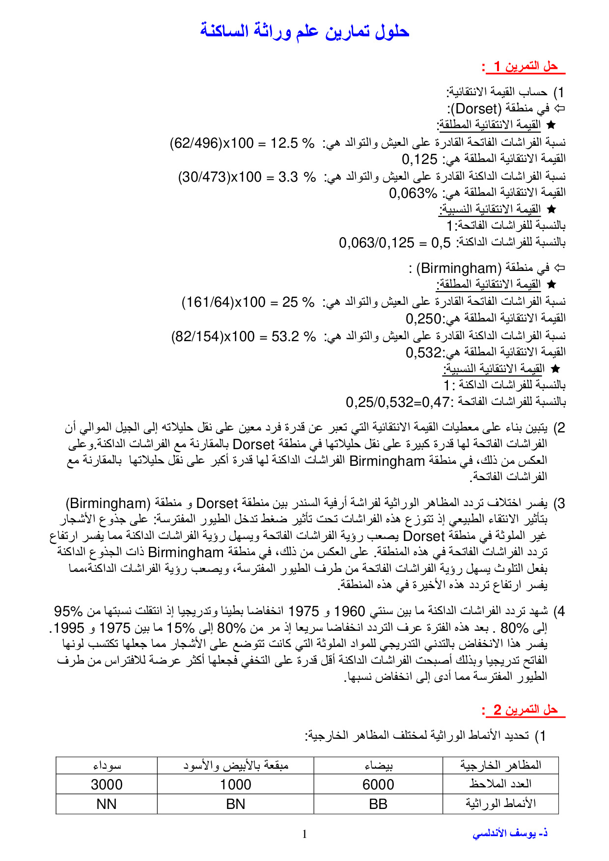 علم وراثة الساكنة - تصحيح سلسلة التمارين 1