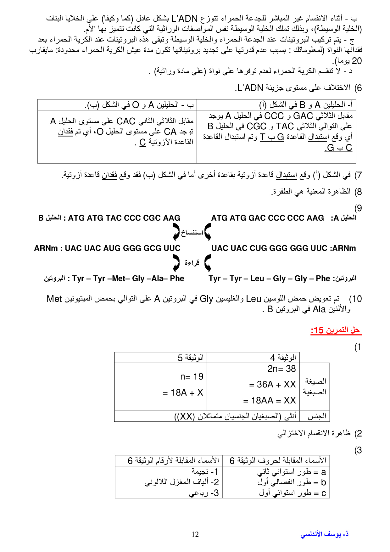طبيعة الخبر الوراثي والية تعبيره - تصحيح سلسلة التمارين 1