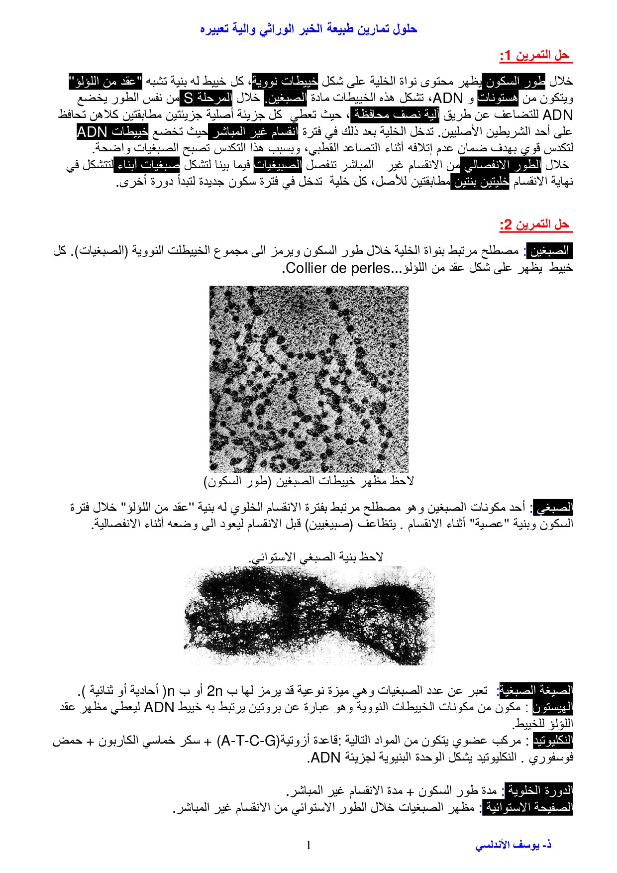طبيعة الخبر الوراثي والية تعبيره - تصحيح سلسلة التمارين 1