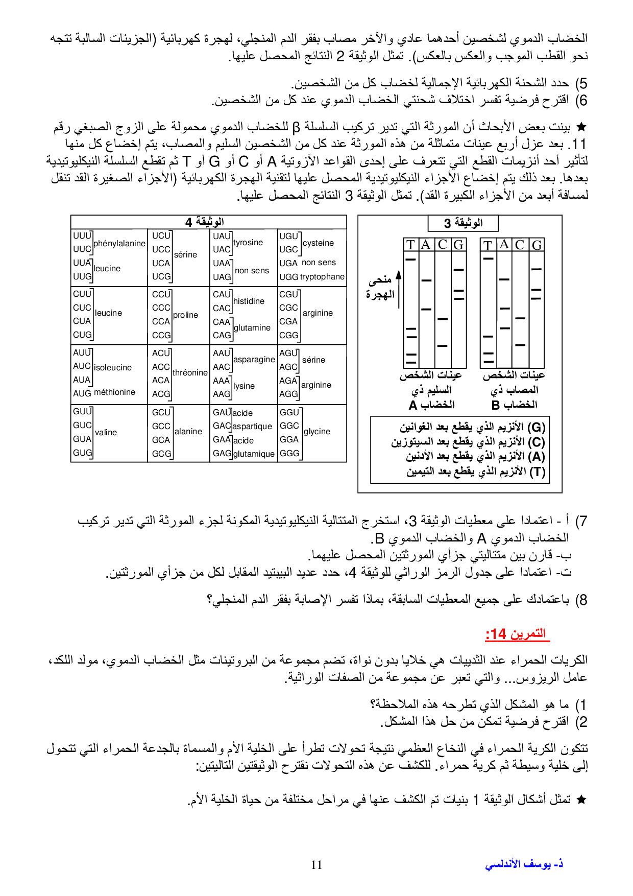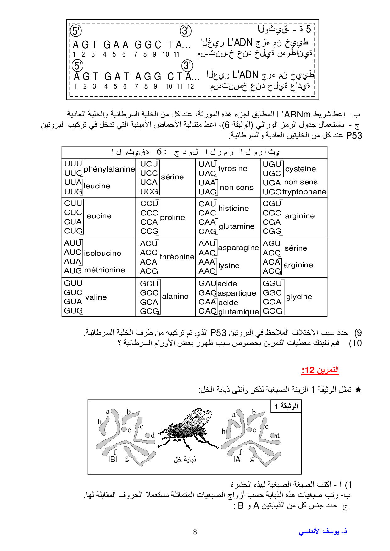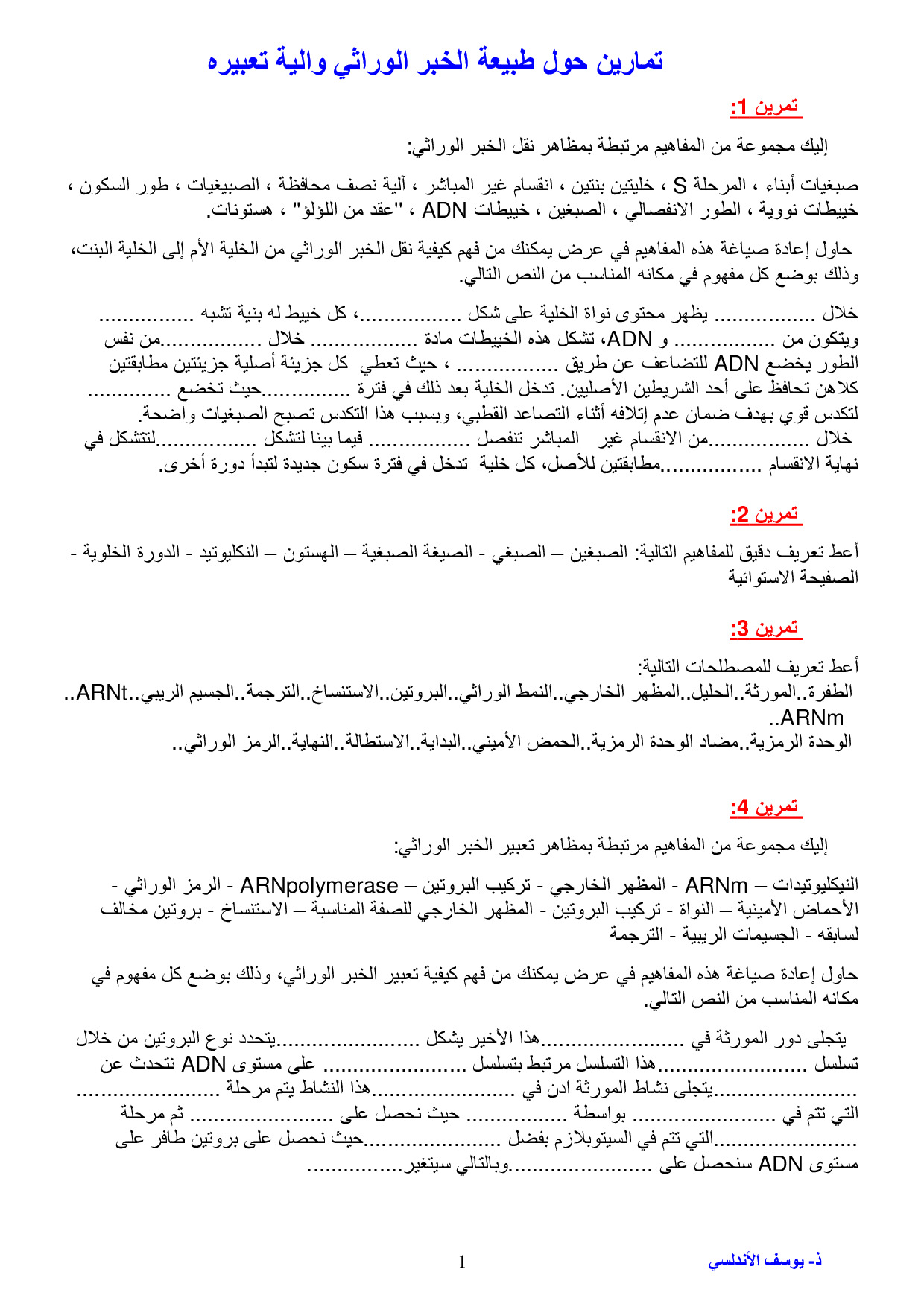 طبيعة الخبر الوراثي والية تعبيره - سلسلة التمارين 1