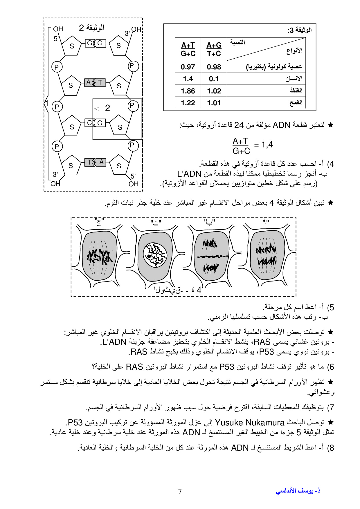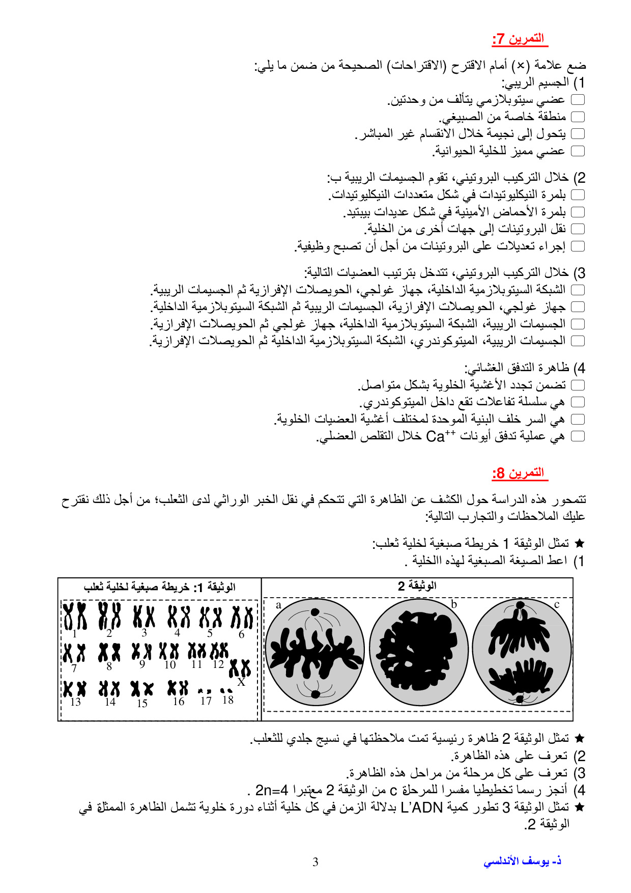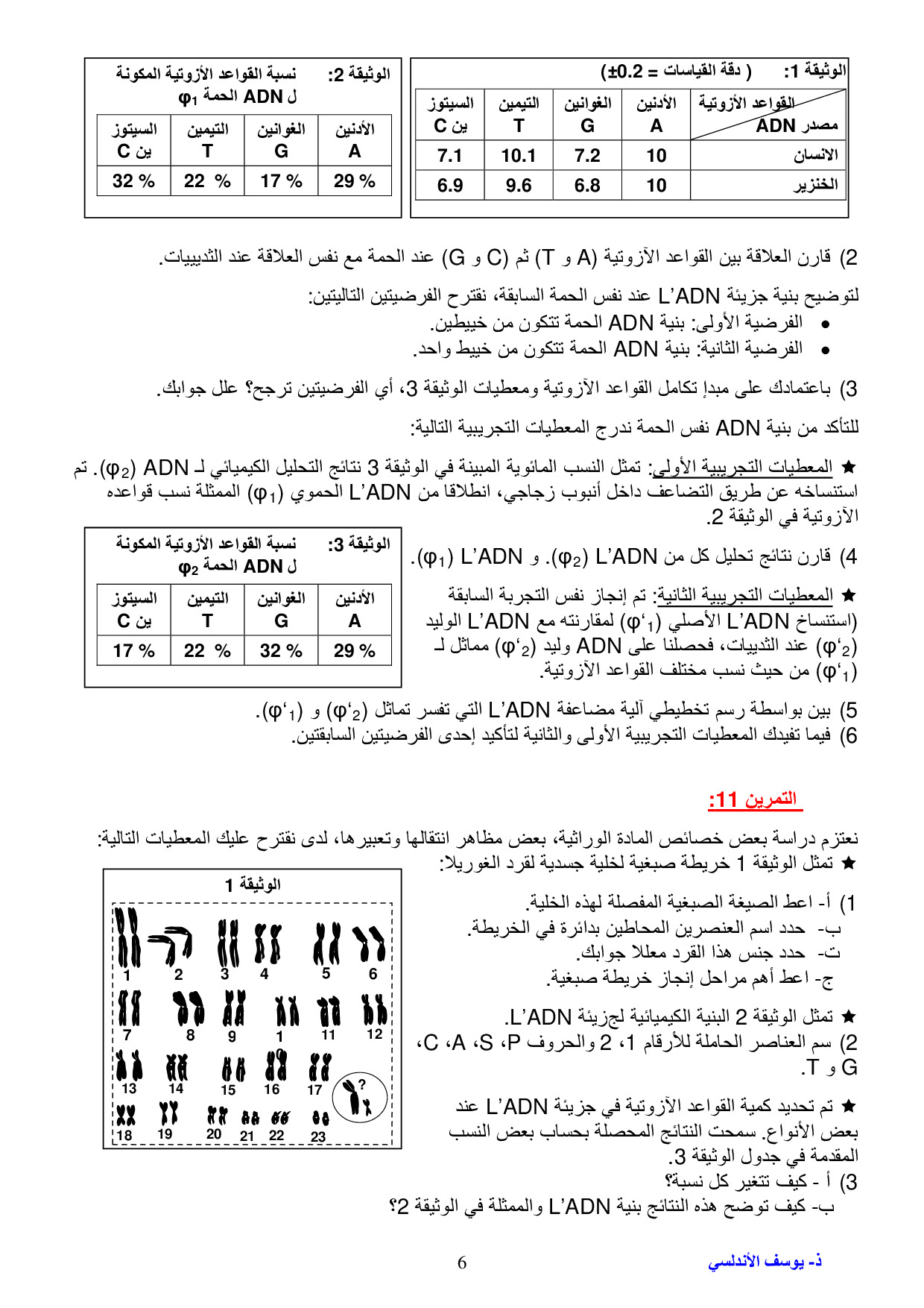 طبيعة الخبر الوراثي والية تعبيره - سلسلة التمارين 1