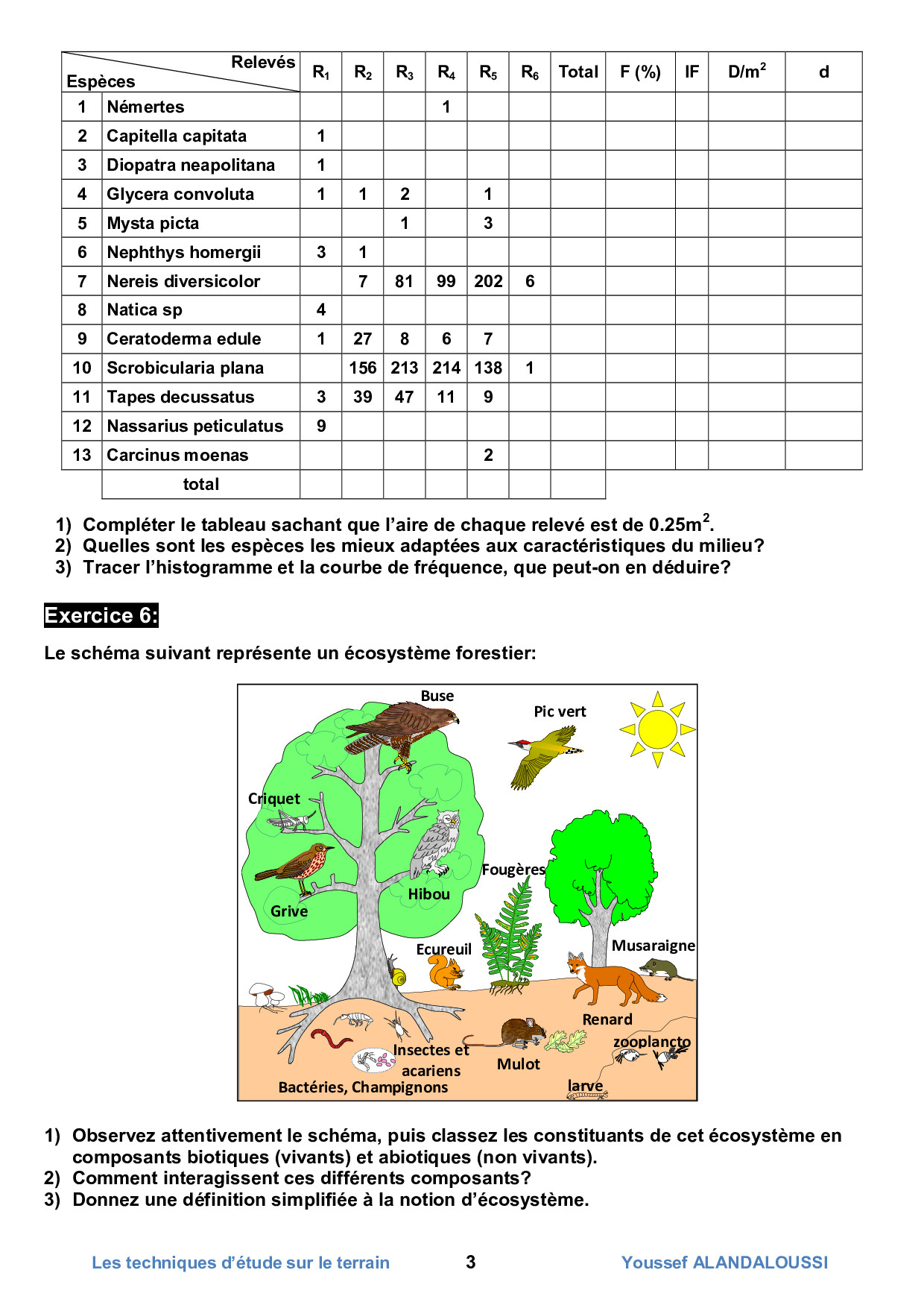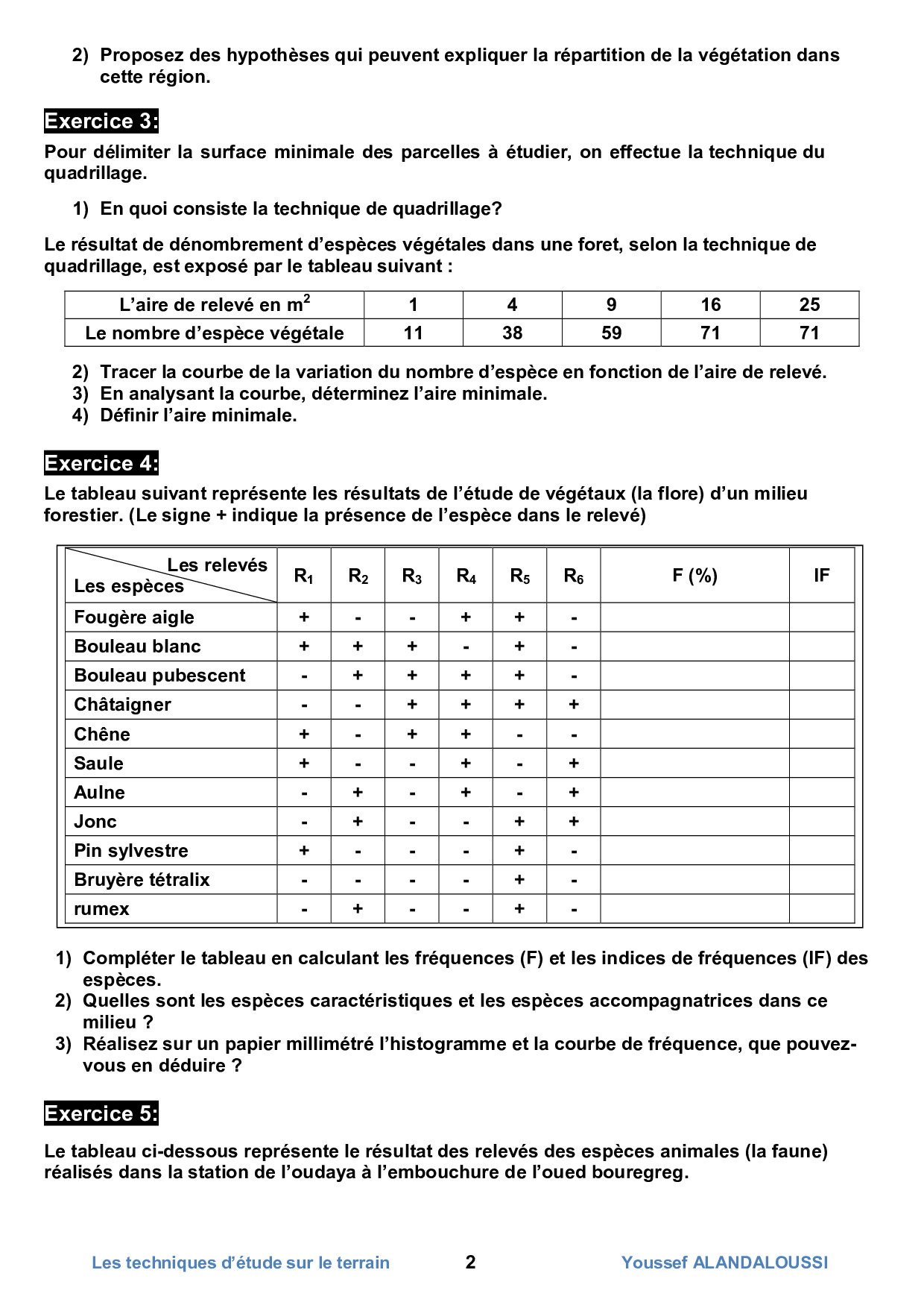 Les techniques adaptatives à l’étude écologique sur le terrain - Série d'exercices 1