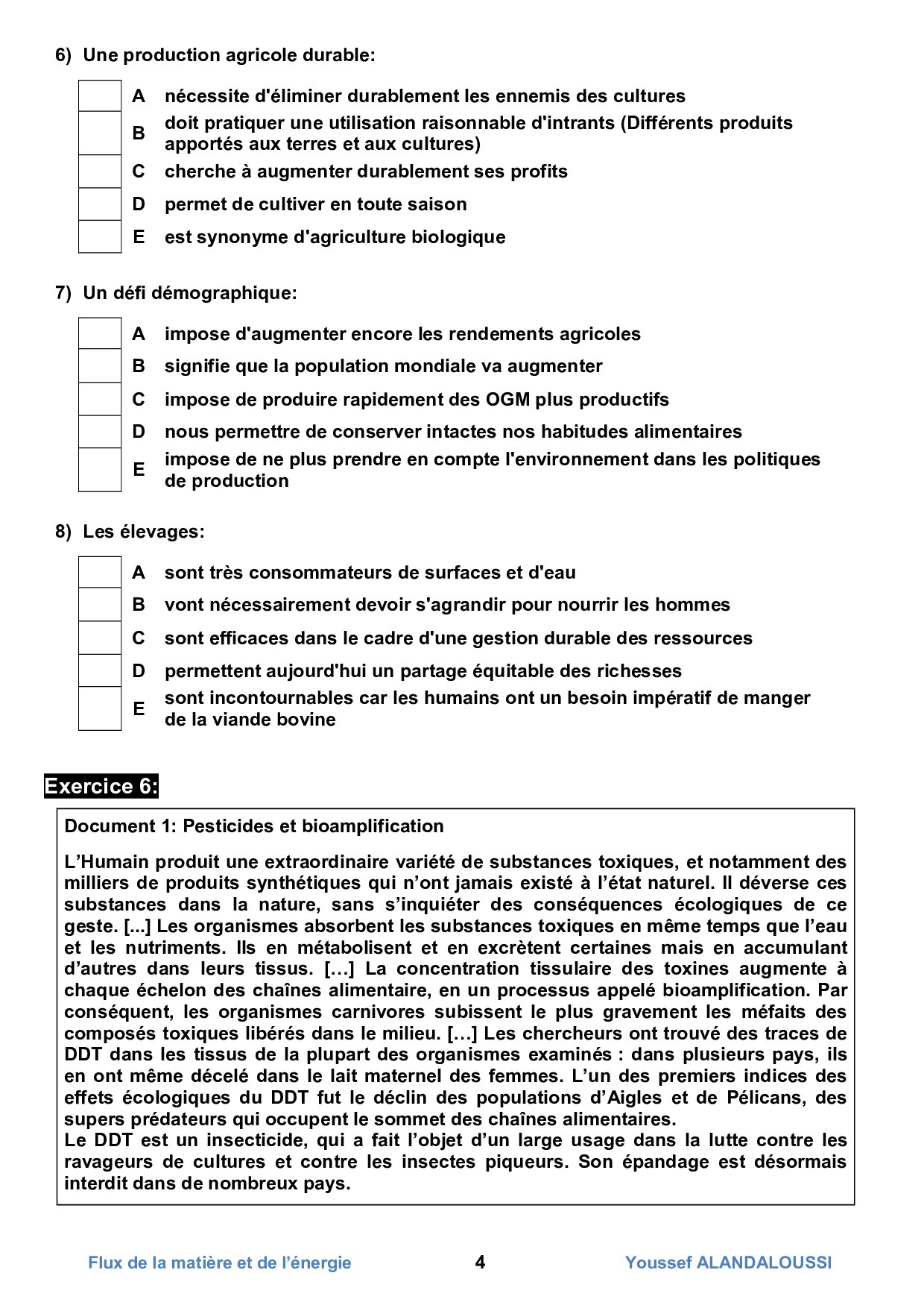 Flux de la matière et de l’énergie dans l’écosystème - Série d'exercices 1