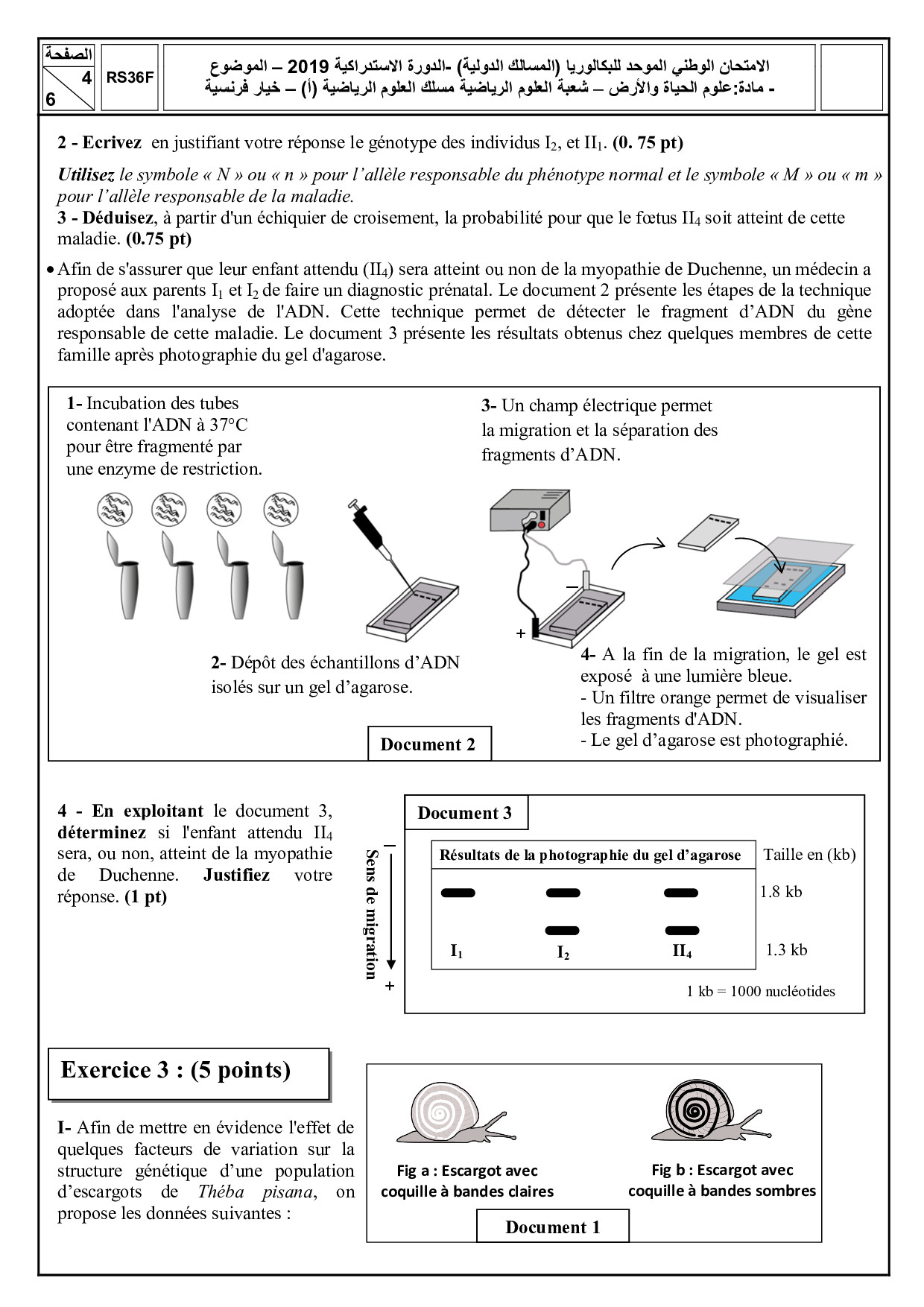Examen National SVT Sciences Maths A 2019 Rattrapage - Sujet