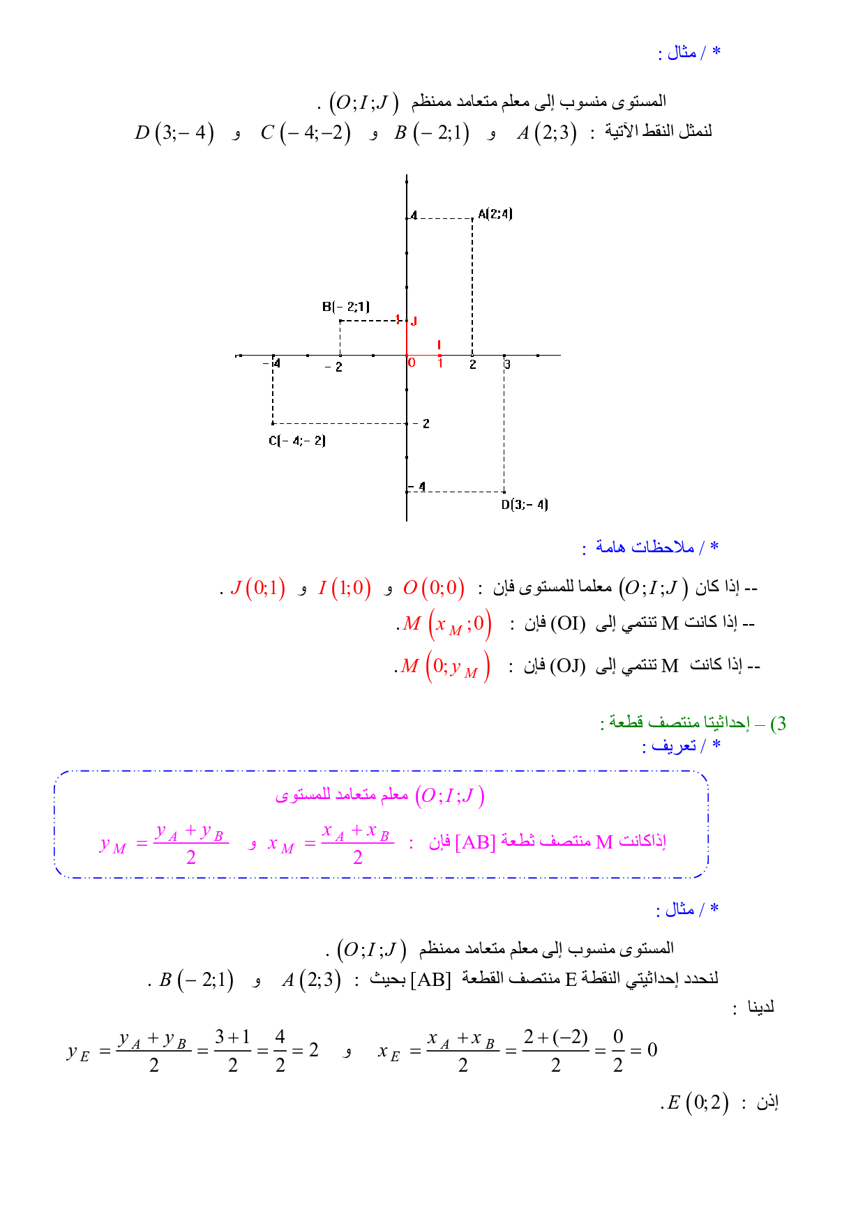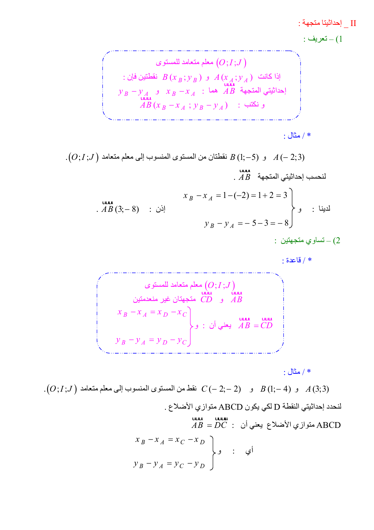 المعلم في المستوى - إحداثيتا نقطة - إحداثيتا متجهة - الدرس 3