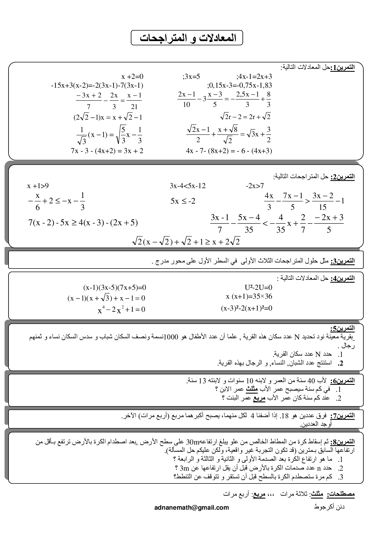 المعادلات والمتراجحات من الدرجة الأولى بمجهول واحد - تمارين غير محلولة 2