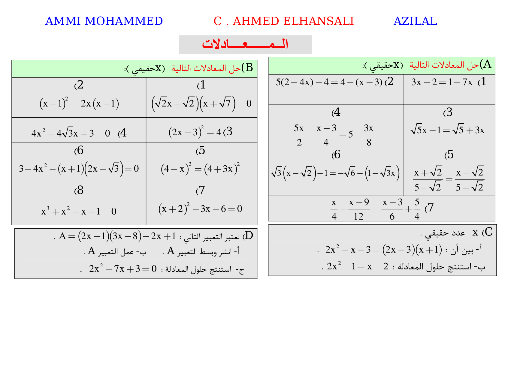 المعادلات والمتراجحات من الدرجة الأولى بمجهول واحد - سلسلة التمارين 4