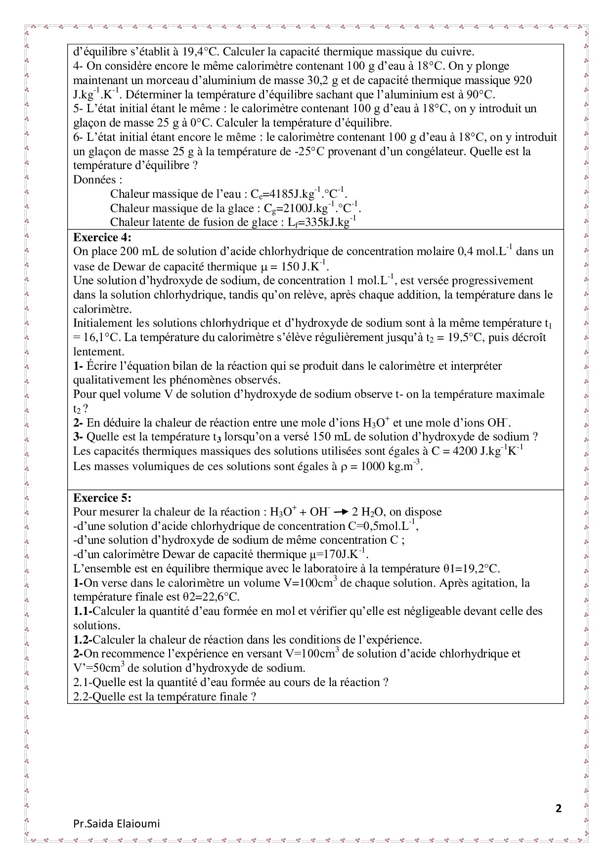 Énergie thermique et transfert thermique - Exercices non corrigés 2