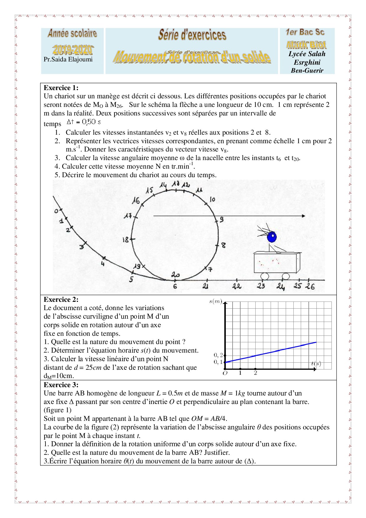 Rotation d'un solide indéformable autour d'un axe fixe - Exercices non corrigés 4