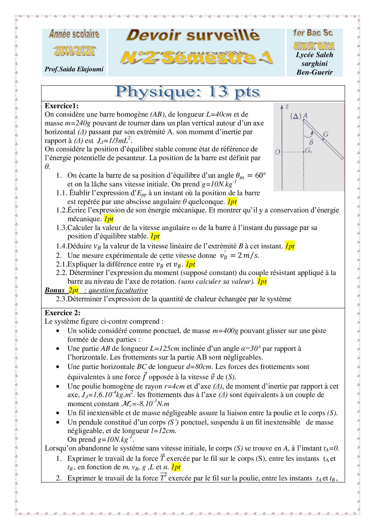 Devoirs 1er semestre