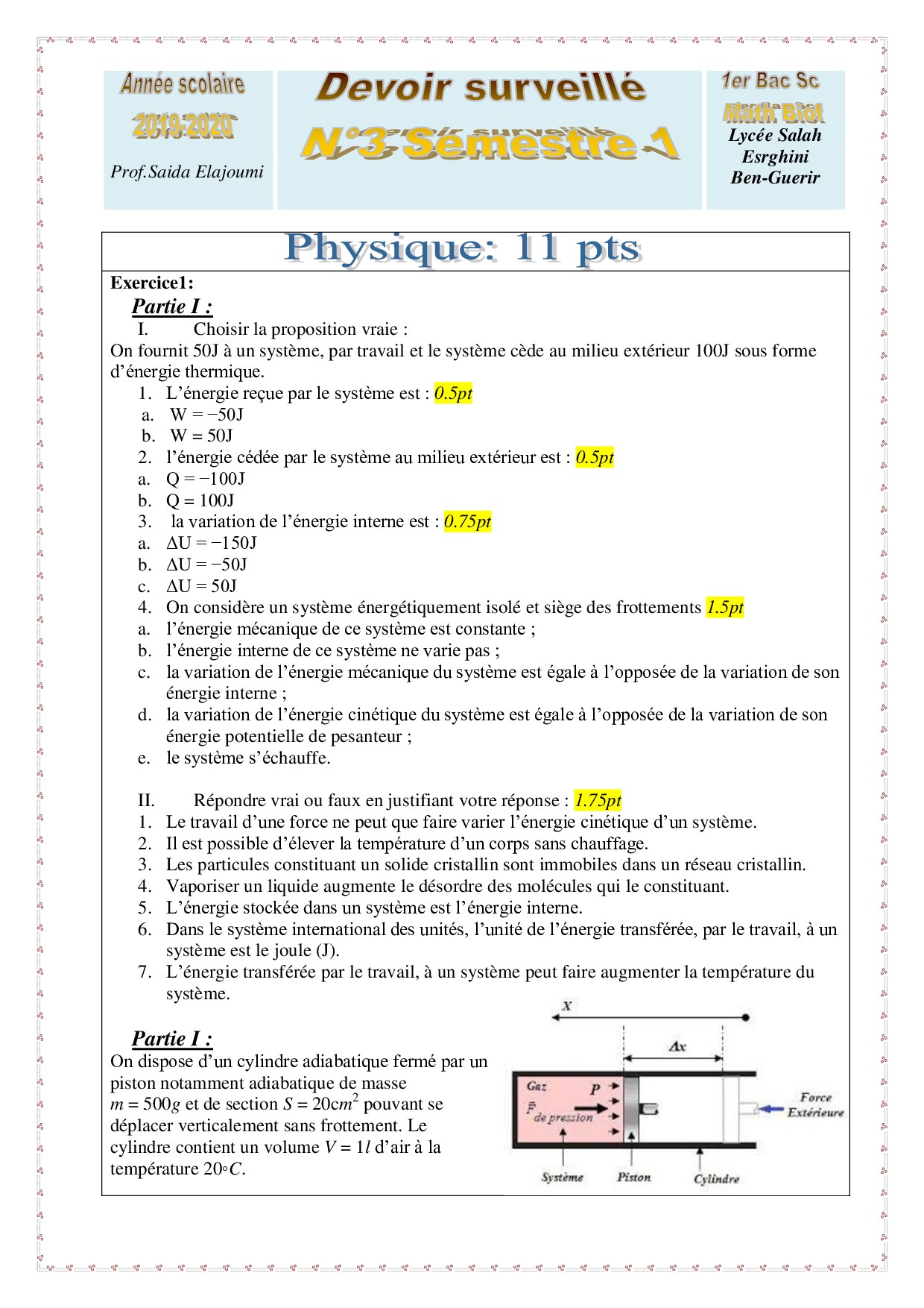 Devoirs 1er semestre