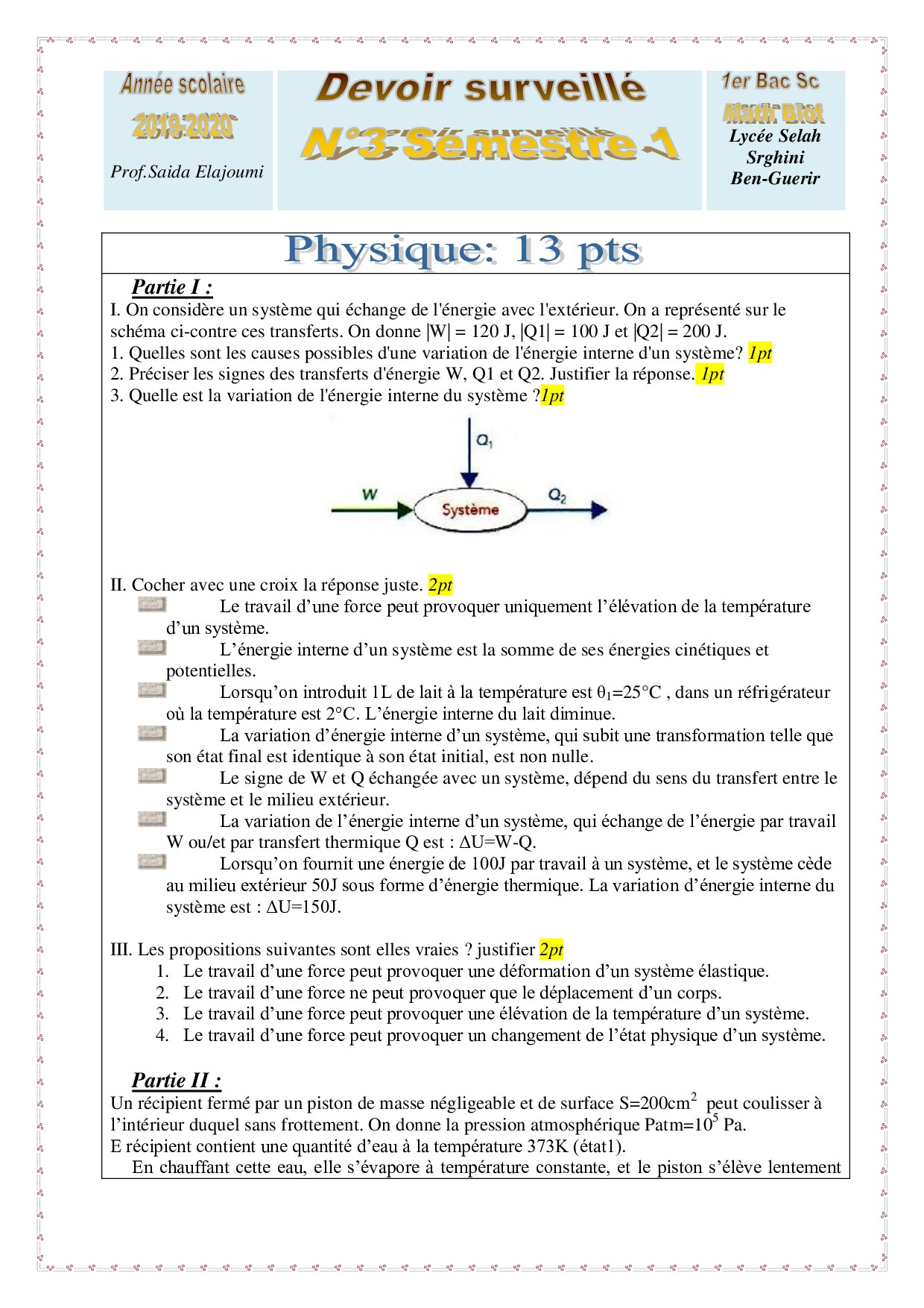 Devoir 3 Modèle 3 - Physique Chimie 1er Bac Semestre 1