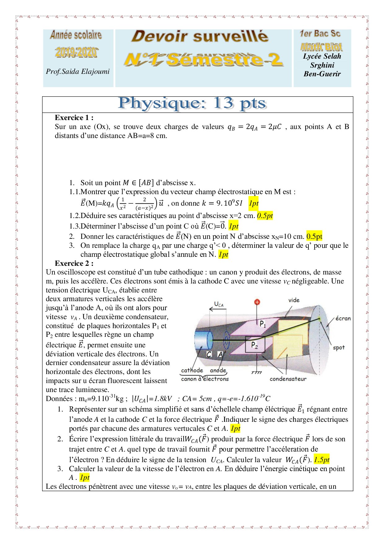 Devoir 1 Modèle 5 - Physique Chimie 1er Bac Semestre 2