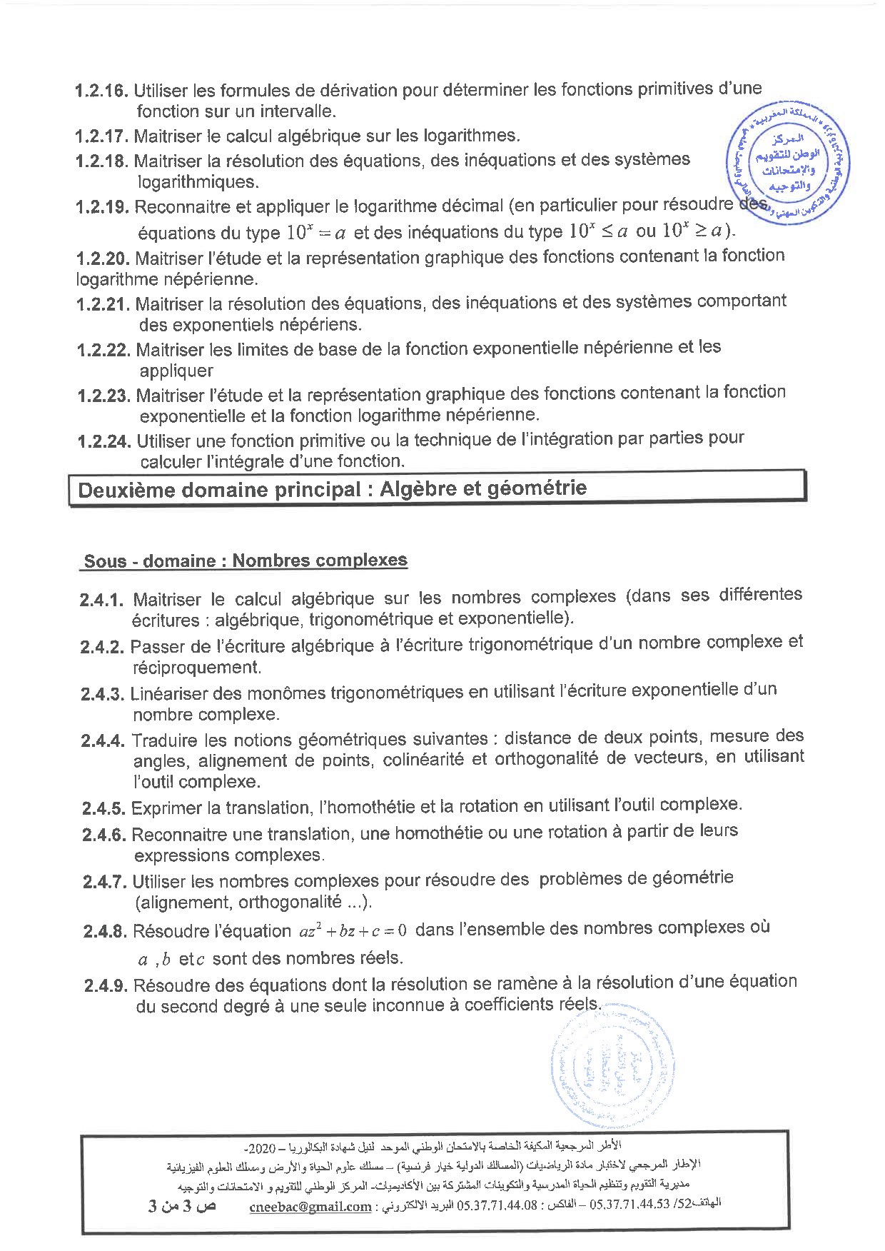 Cadre de référence de l'examen national 2020 - Maths SPC-SVT