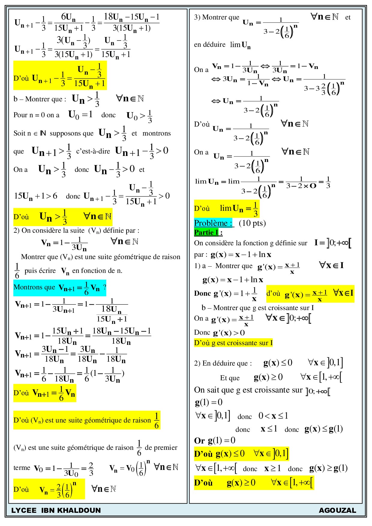 Examen National Maths Sciences et Technologies 2011 Rattrapage - Corrigé