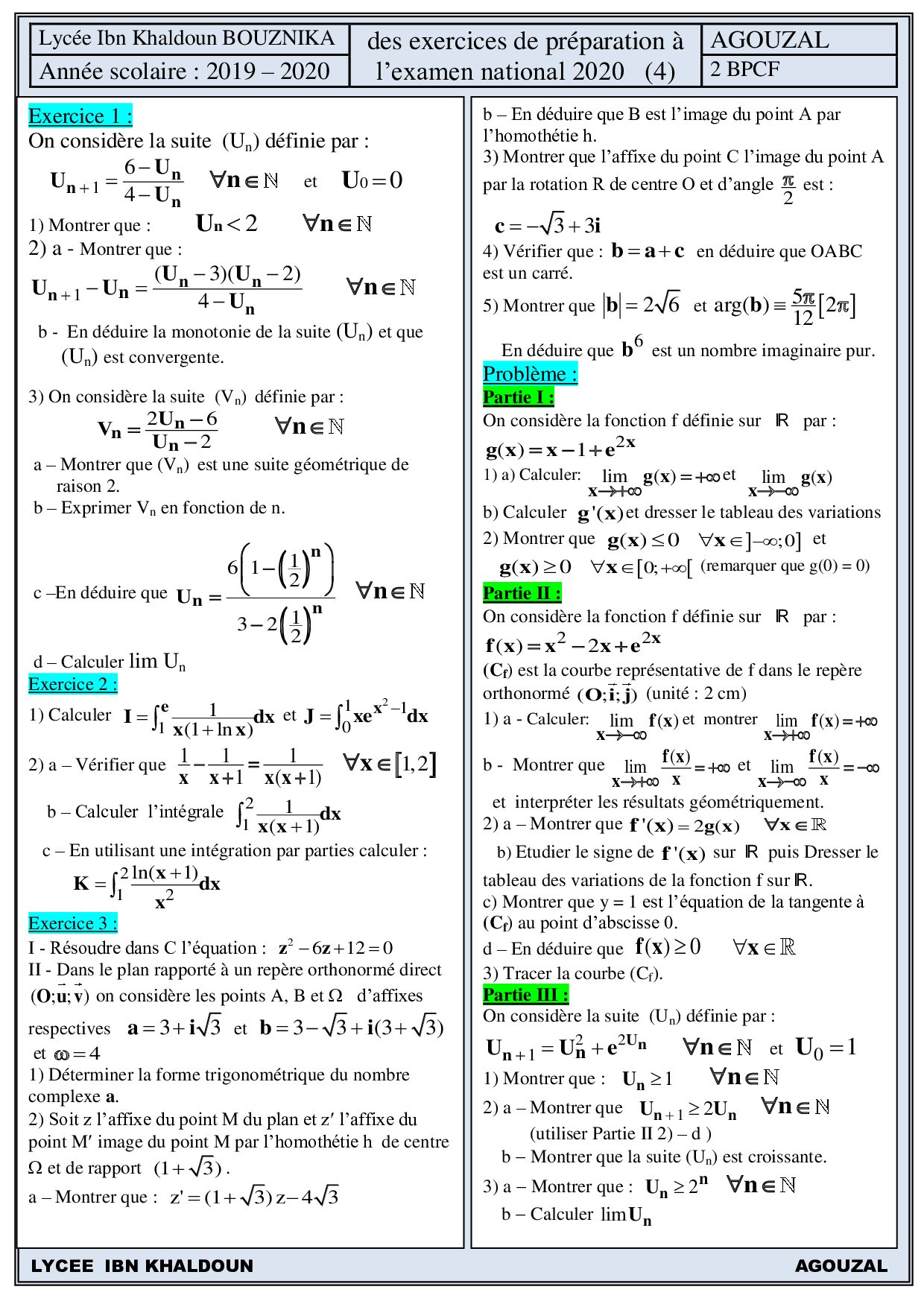 Préparation à l’examen national 2020 - Série d'exercices 1